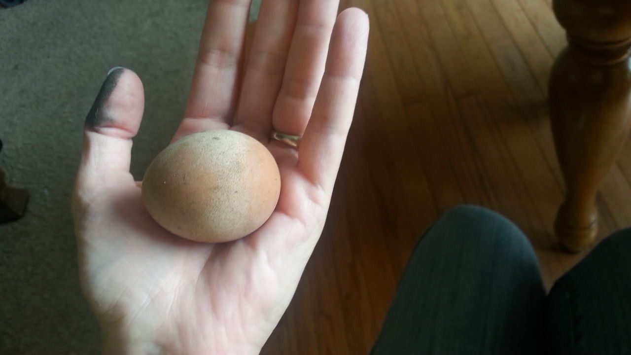 fertile eggs one for each girl, and as they sat side by side inside their little house i checked on them every day and left food & water & treats out for them near by, so in time , they each had the tiniest chicks I had ever seen, they were sooo small they could fit in a shot glass & still have room....lol... one was a black male & the other a yellow female....lol... Thelma & Louise love them dearly , and were great mothers , so by the end of that summer , we had a bunch of chickens , i have no idea what kind ... ??