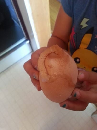 I just found this egg in my nesting box. It appears to have an umbilical cord coming out of the end. I don't have any roosters, just 3 hens. Does anyone have any insight on this??