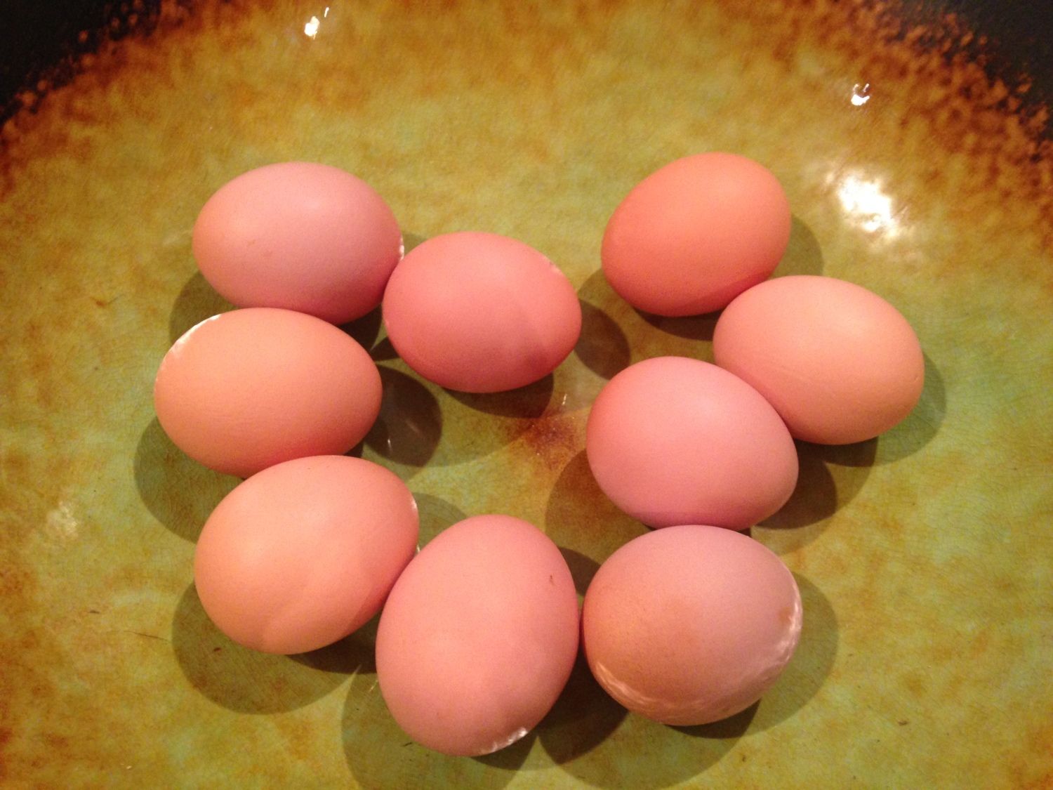 It's hard to see in the photos but in real life the bluish tinge is very noticeable. Here it just looks 'dusty'. Also they all are 'normal' brown on the tops and bottoms, so it looks almost like someone has lightly spray painted them around the center this powdery colour. I'm very new to chickens so I have no idea if this is something that needs addressing or not. Thank you!