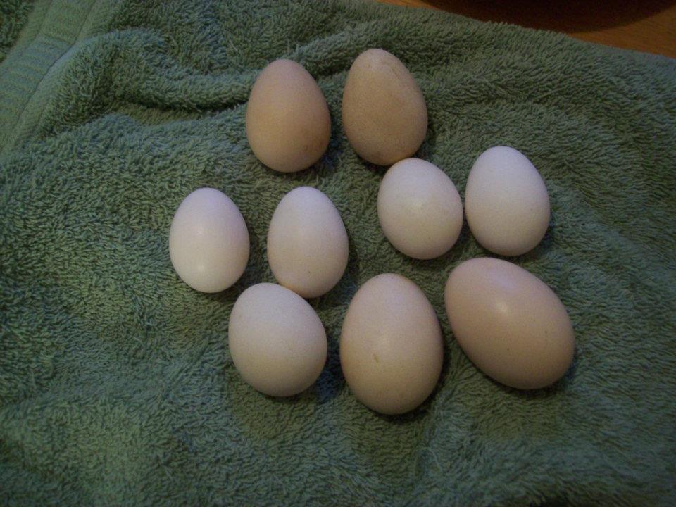 Bottom to top - Polish girls' eggs, we have 2 laying and one's egg is quite a bit bigger.