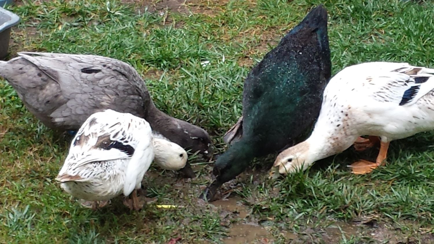 I haven't posted in a while--these are our four girls, all grown up (hatch date was August 25). Two Welshies (Ivy and Harley), a Cayuga (Luna), and a Blue Swedish (Erin).