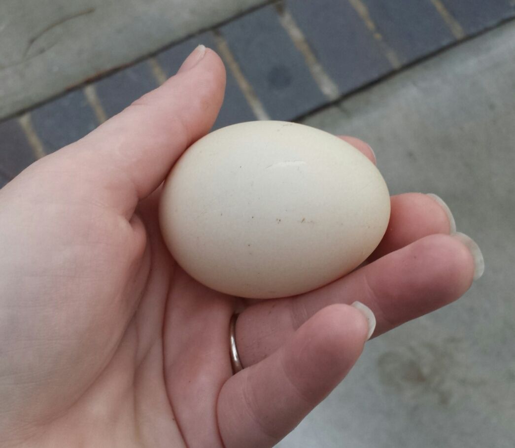 A few weeks ago, I was thinking that they were 5 months old, but wasn't holding out hope for eggs till the days got longer. Lo and behold, the very next day: