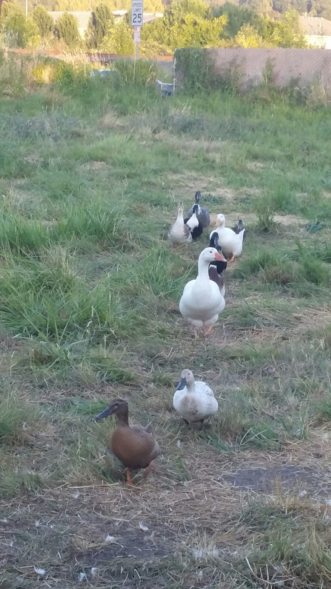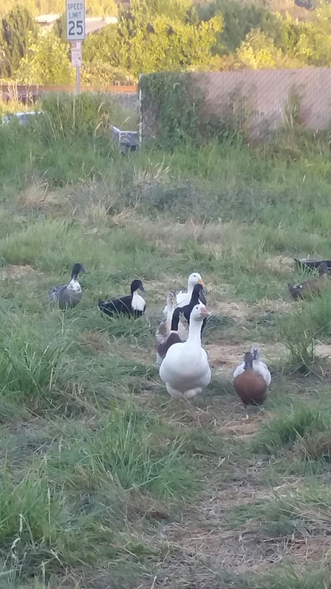 They have access to about 1/4 acre to roam and forage and eat whatever they can find in the weeds, dirt, and grass.