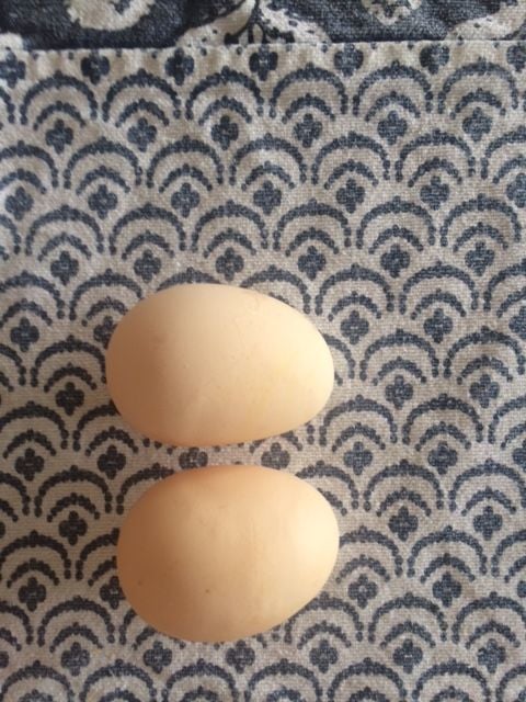 I forgot the mention, we got a few odd shaped eggs since then, e.g. 2 i got this morning are like kidney shaped and one with a ring patchy shell.