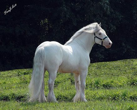 Appearance: A lovely white, with shocking blue eyes. He is stocky and often mistaken for a simple draft horse, as he has a strong, tall body and heavily feathered feet.