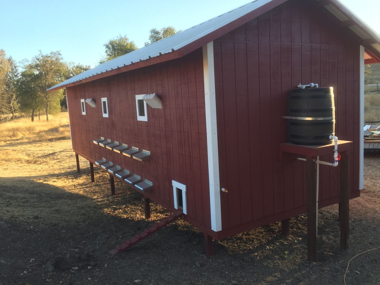 My family owns a small ranch in central California and started with chickens last year. We're currently running approximately 130-150 birds and supply local restaurants and farmers markets. We free range them on a 5 acre section co-mingled with sheep and goats. I'm posting these images just to give back to this community because I found it to be a great resource for our coop design. We decided to elevate the coop to save on foundation work, control predator loss, and to easily harvest excrement for fertilizer. I hope these images help anyone who is thinking of building their own coop. Thanks for the Intel that this site provides.