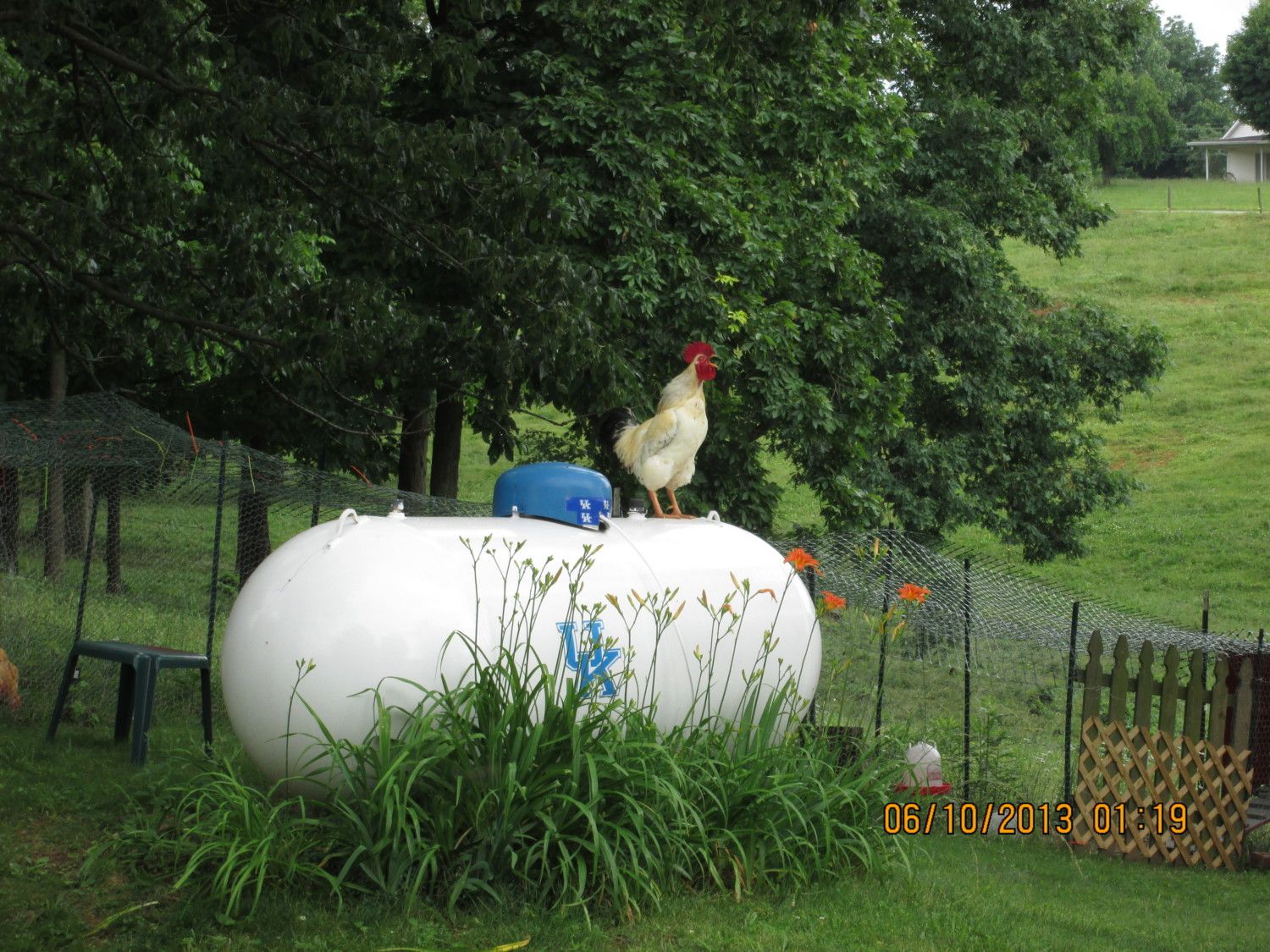 Jun 10, 2013 #3 scratch'n'peck Crowing 16 Years Friend Joined Oct 31, 2008 Messages 5,921 Reaction score 694 Points 481 Location West Michigan My Coop My Coop Elvis is master of all he surveys, including the propane tank. Last edited: Jun 10, 2013