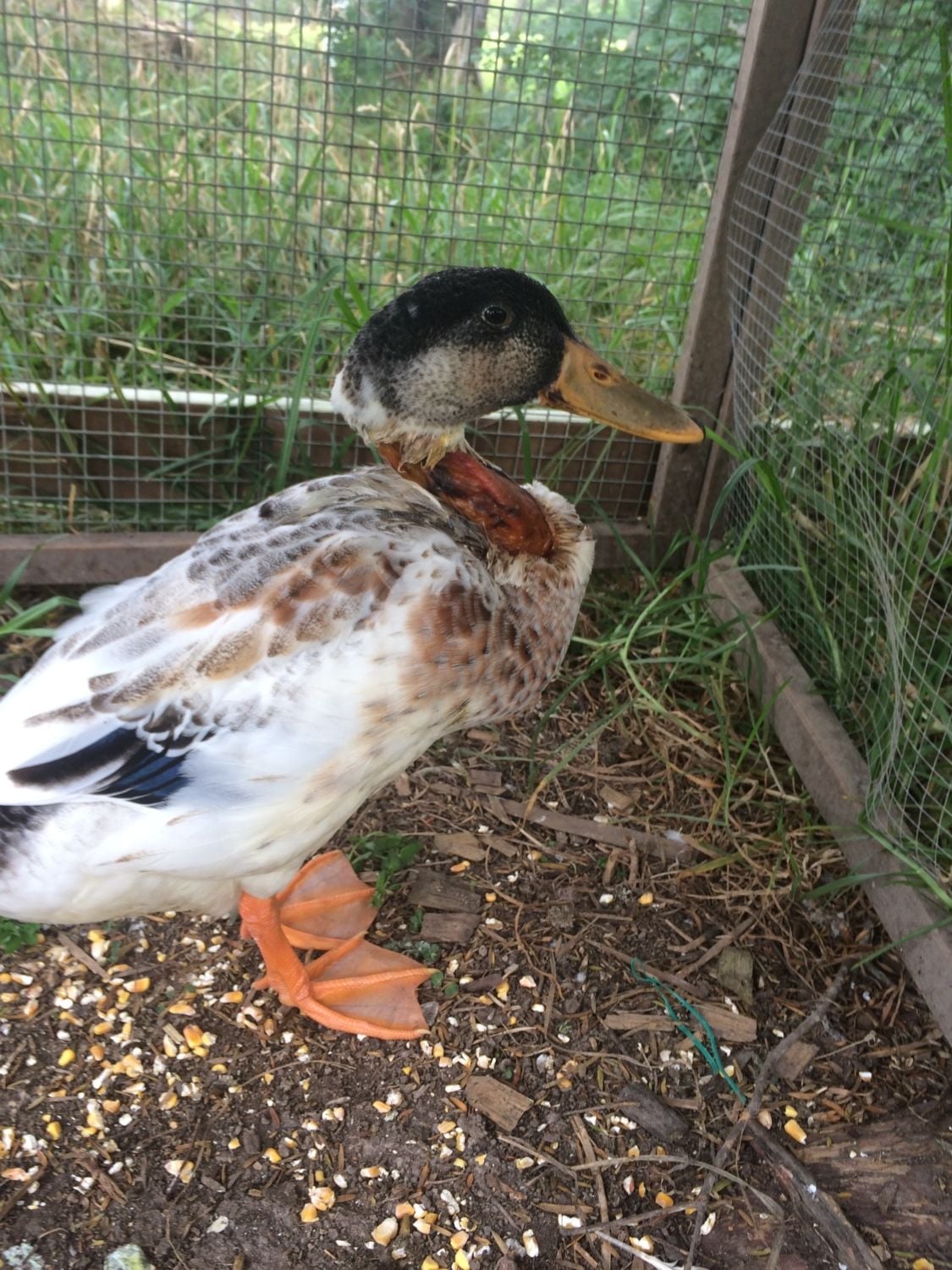 i have an Indian runner, around 4 months old, and last night it came home after being out with the rest of ducks and all of the feathers around it neck have been striped of. it looks as if something has skinned it. It wasn't bleeding but it was red and didn't look comfortable, and you can see all of the muscles in its neck. The duck is still eating/drinking/pooping, and wanting to go off with its mates. I thought it would probably die over night so i put it with some food and water in a cage, with still enough room to move around freely. It survived the night and the day today, and i know need to know if i can treat it in someway or if i should just get him put down. Any suggestions as to what might have caused it would be helpful so I can try and prevent it happening to the rest of them. I live on a farm and we have possums, stoats, and also wire fences, but none that it could have got stuck in.