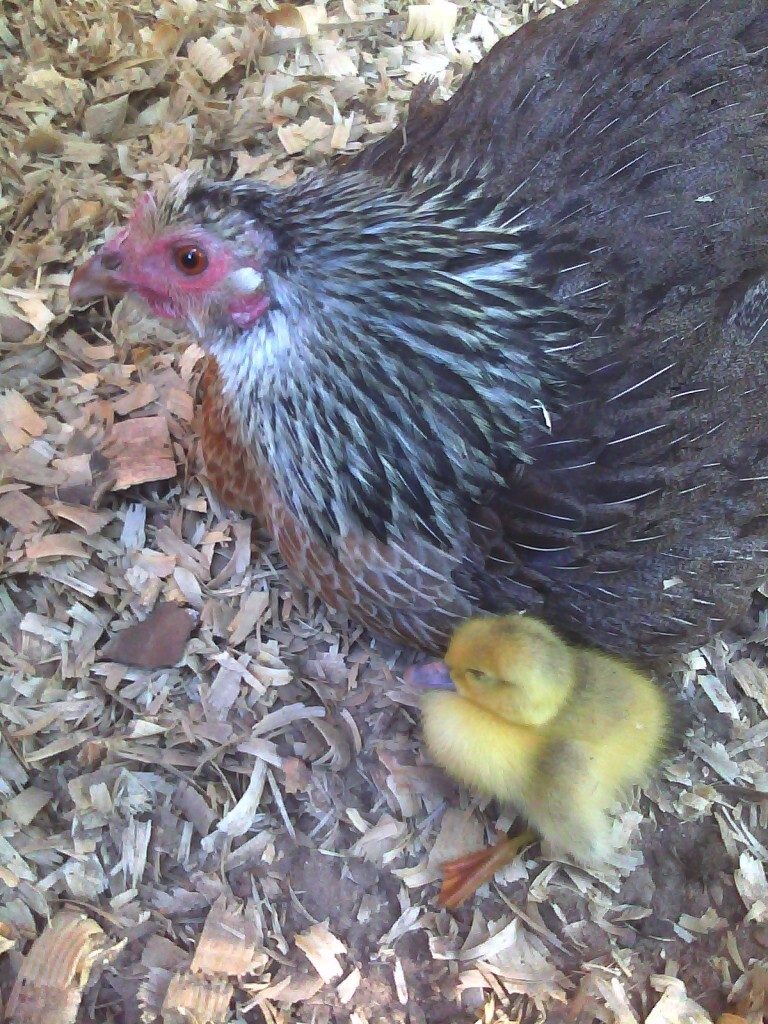 A customer of mine brought me a little duckling from the park I study. This duckling appears to be out of one of the hens I am following, so I'd place it at a Thursday hatch ( at least that's when she was due to be done. ) He said he saw the poor duckling yesterday struggling to swim, and this morning the duckling was being pushed under the water by one of the male ducks. The duckling swallowed quite a bit of water, and it's craw / crop is full but smooshy. It was stark cold and I gave it to a broody hen to warm back up. I'm about to go check on the little guy and see if the hen accepted him/her... If it counts it's a Muscovy.
