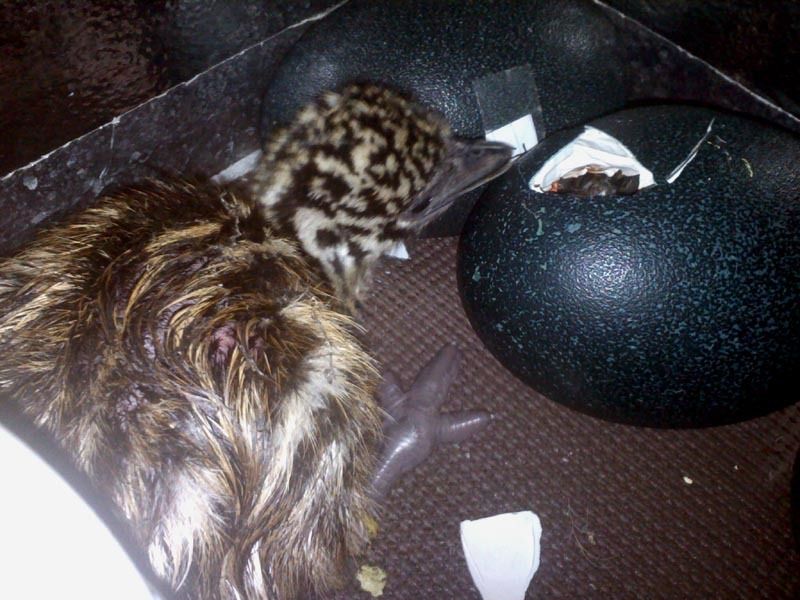 Emu chick #4 hatched a little wile ago.. still in the incubator drying out.. so that's 100% hatch rate on that set of eggs.. next 2 aren't due to hatch for a few days.. then should be only one more after that