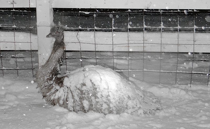 Does anyone know if emus can see at night? Also I live in Canada and it gets cold here with snow, my emu never seems to voluntarily go into her house to keep warm any suggestions? TIA