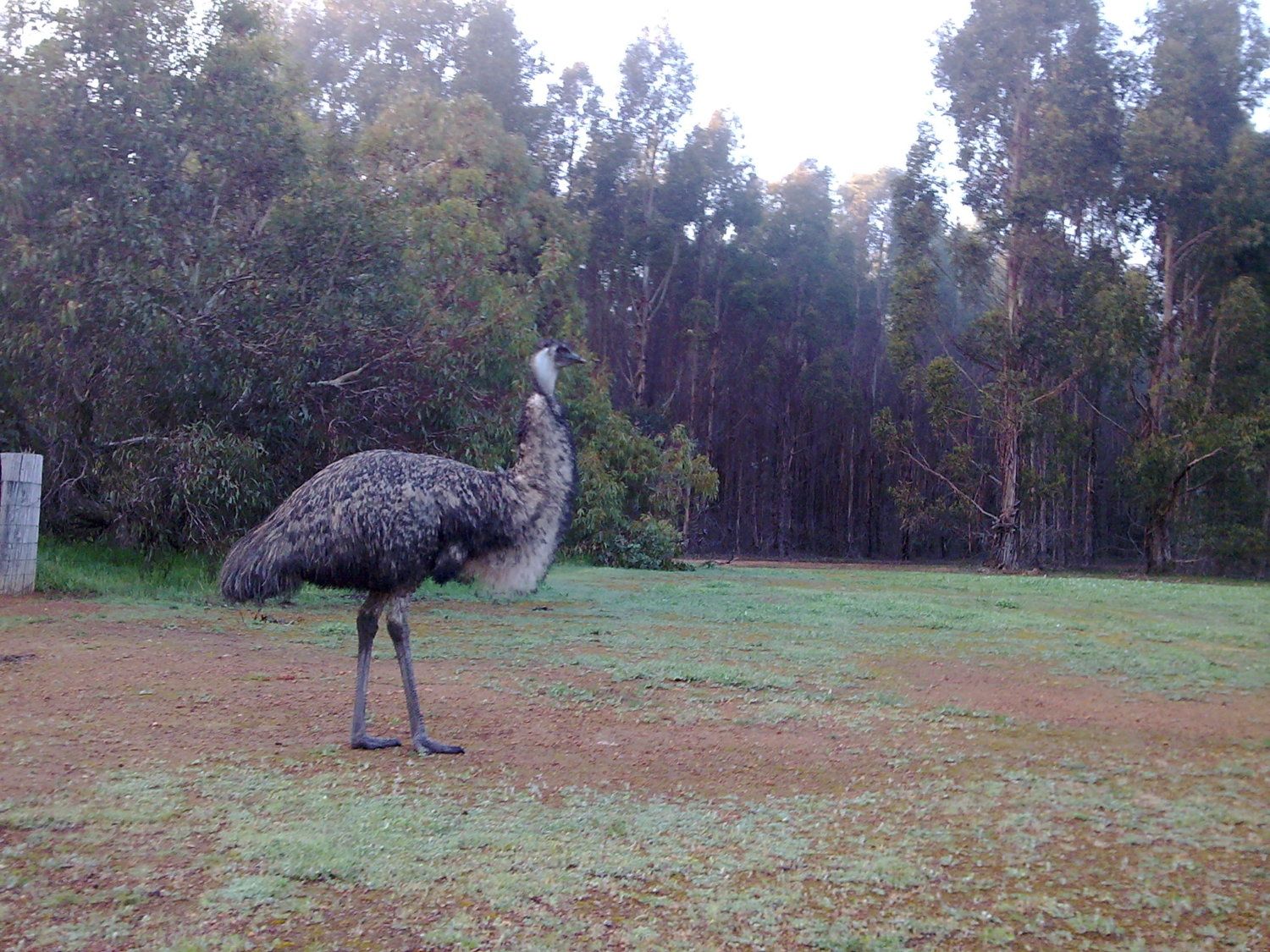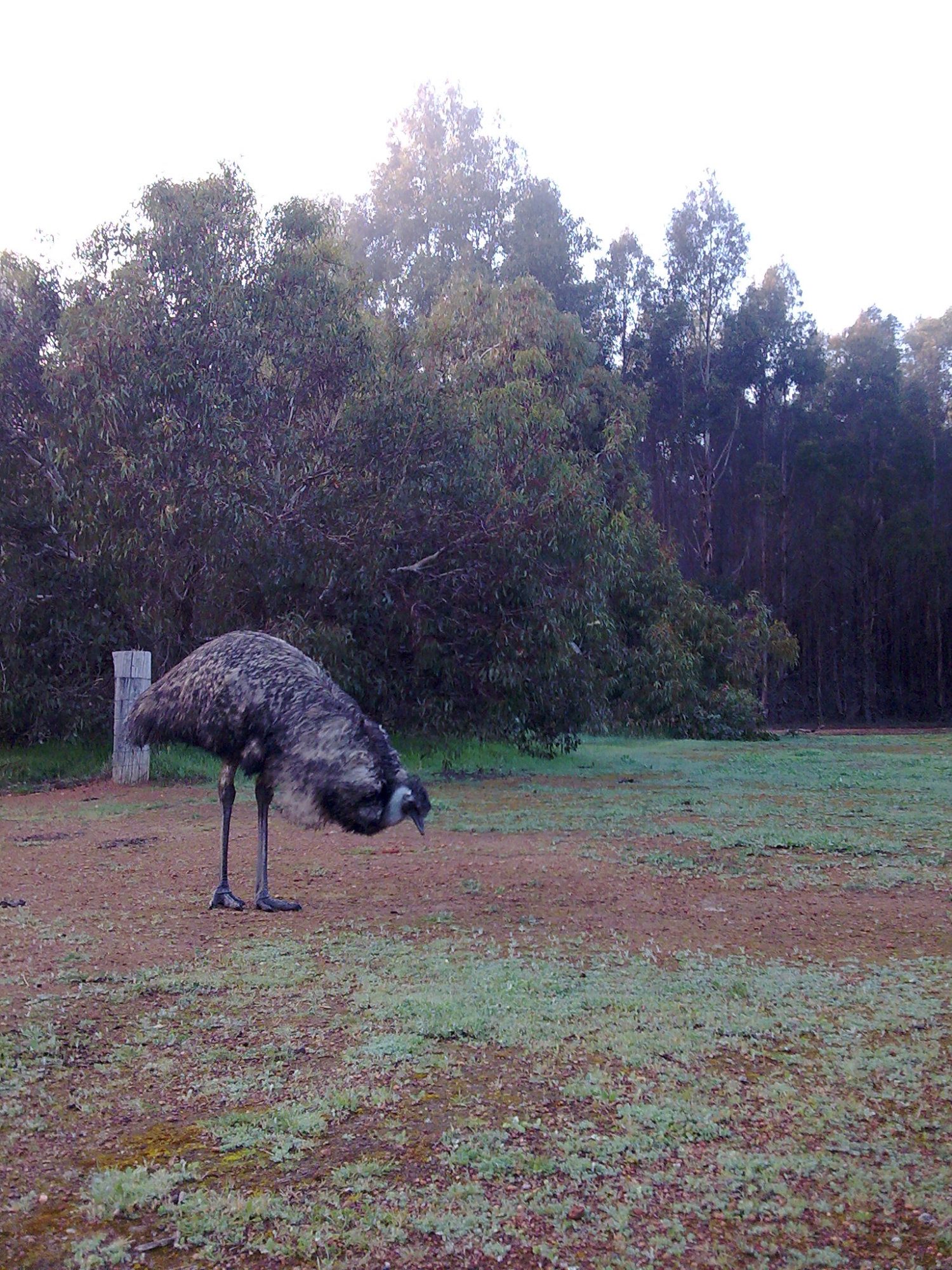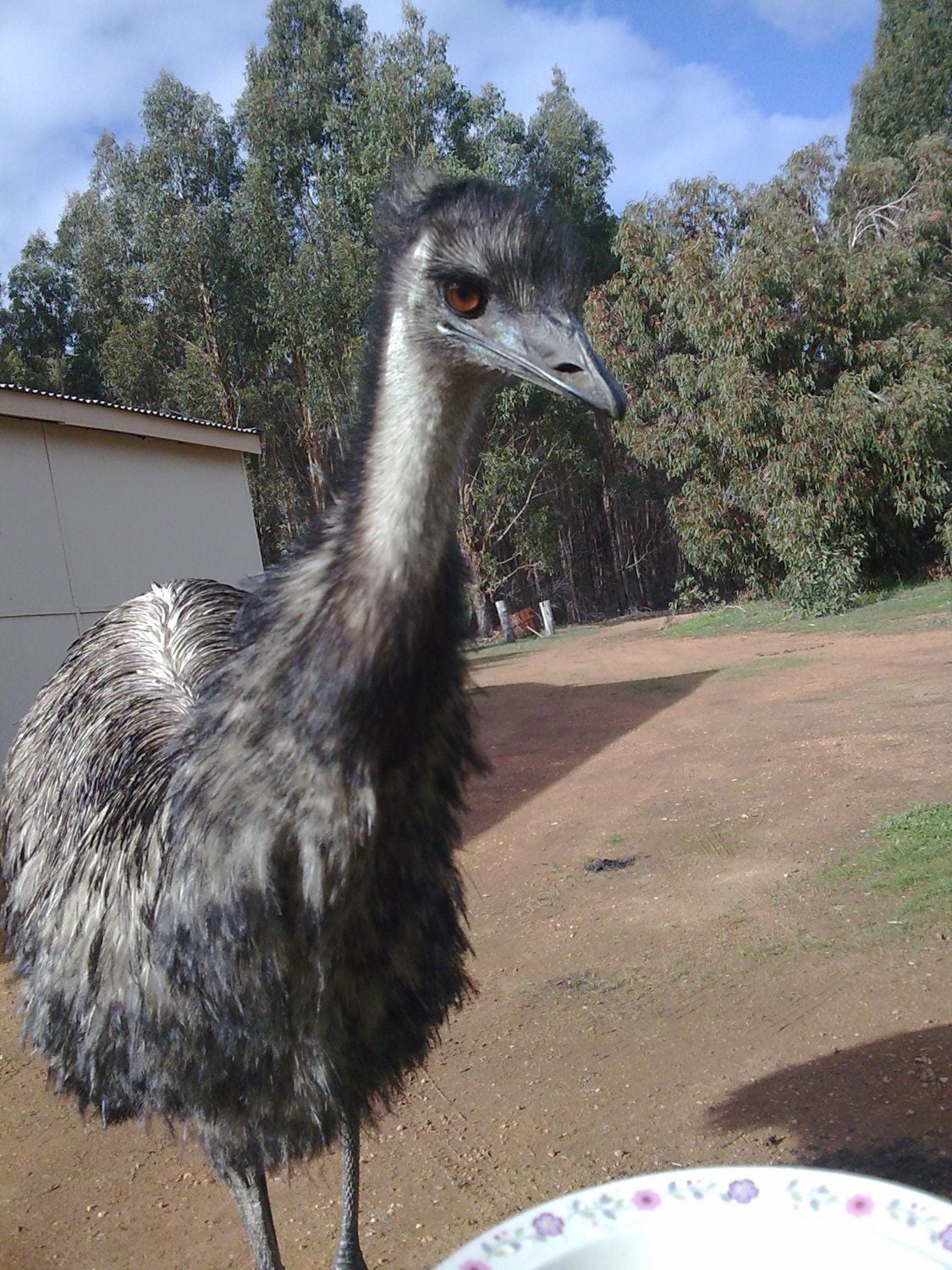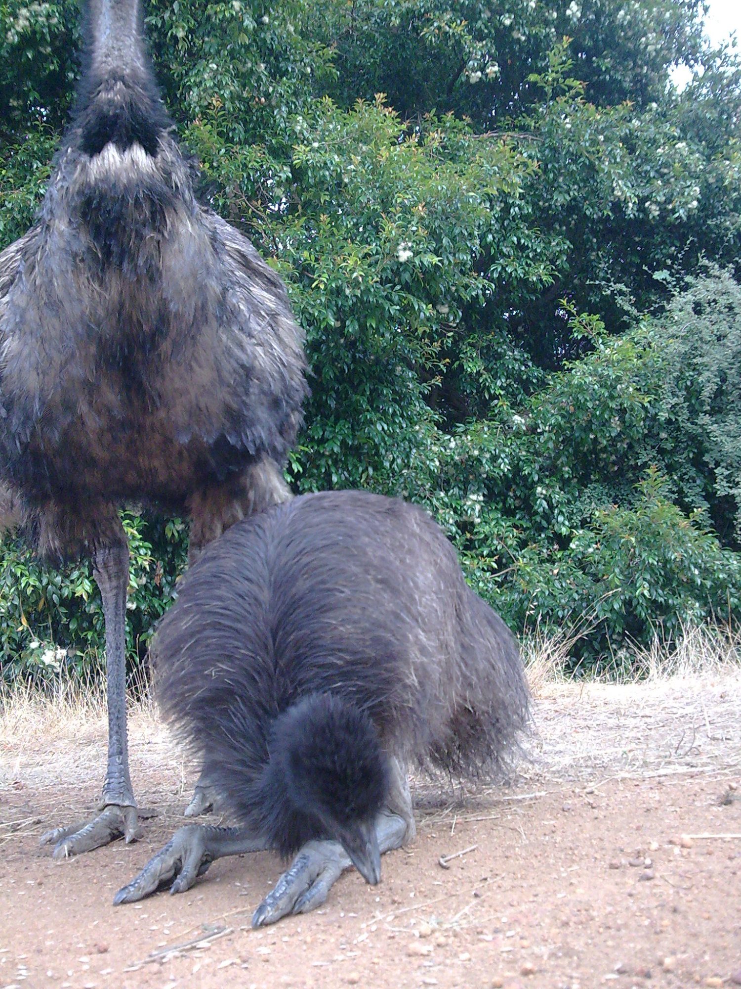 Here is the final photo. I yearn to communicate to all the readers how amazing this Whole Emu Thing is. So, here’s a picture of two emus – big deal. But one bird is facing me: she’s tame. It’s Greedy. Do I have Yummies? The other bird, cautious, is her consort. The photo was taken four years to the month after I arrived. Greedy grew up under the fig tree in the background. It’s her turf, even if I do feed her. Her dad is here as I type, with two chicks. I have observed literally hundreds of birds on this patch of ground. You can’t tell from the photos, but plenty of the shots posted elsewhere on BYC, particularly of wild birds, are taken on this spot. The fig tree is the best Yummies of all, and it is ten feet from gums that stand between the house-clearing and the area in which the wild birds live. (There are divisions between the territories, but ‘my place’ is about 1,600 acres.)