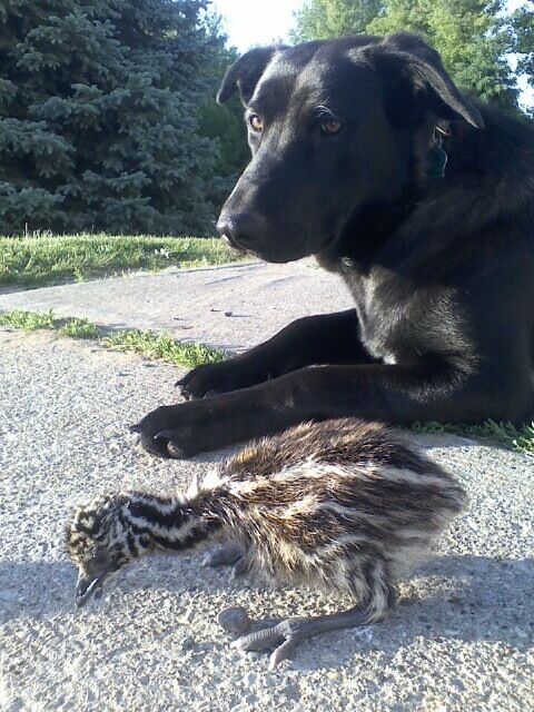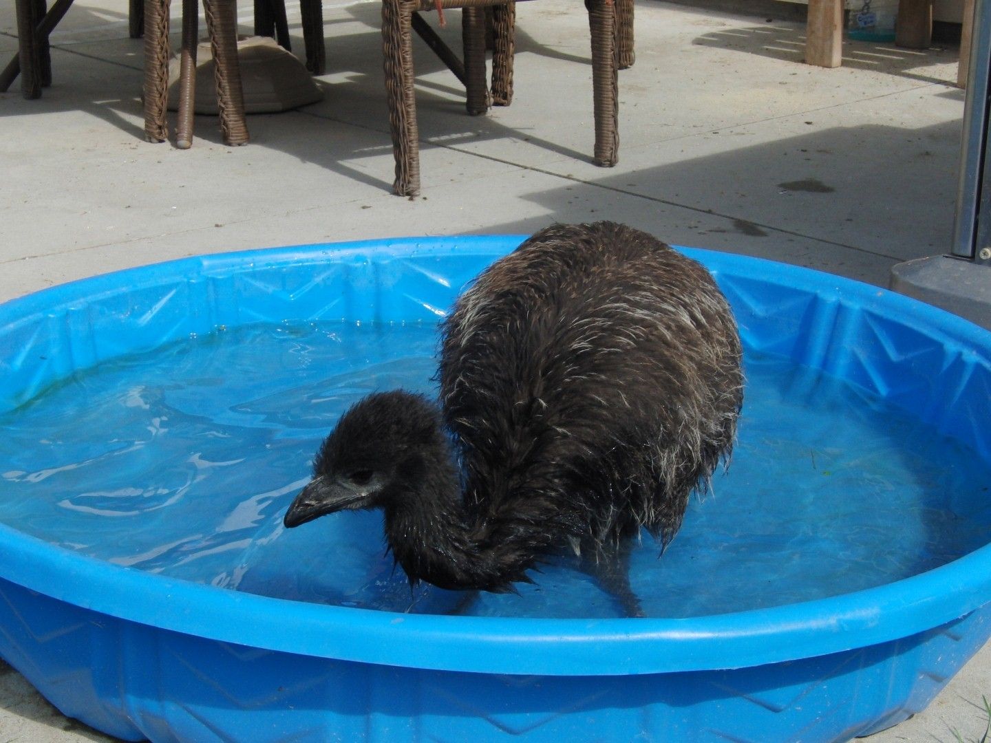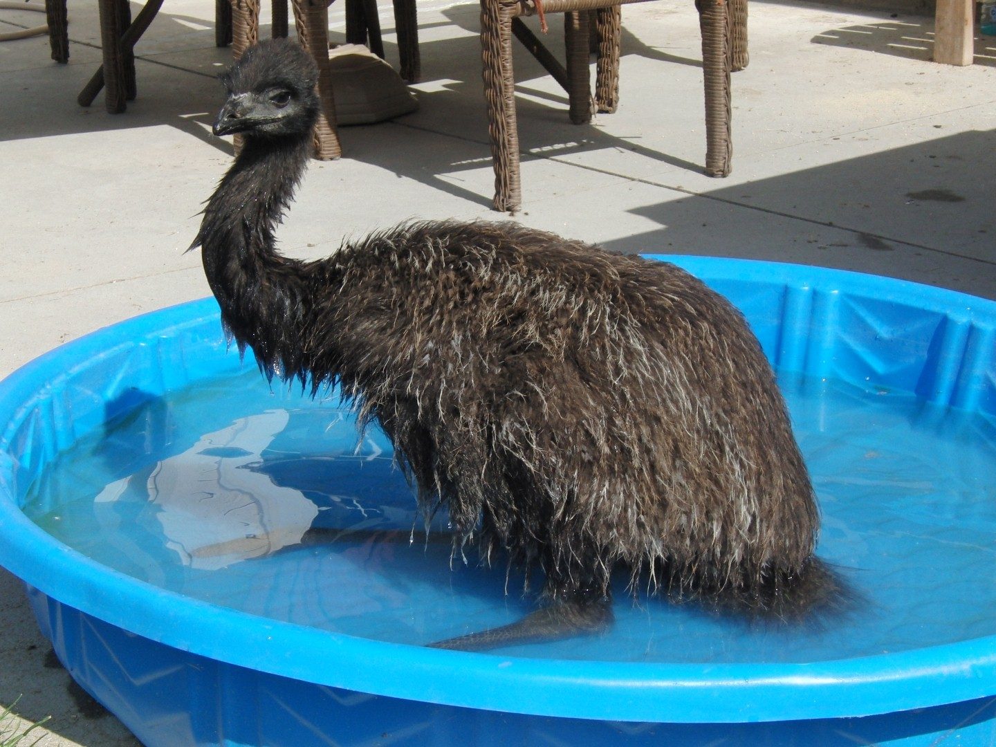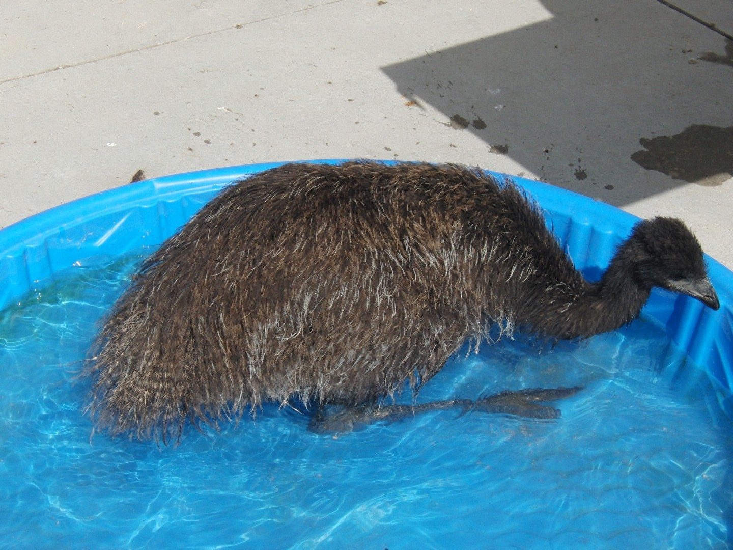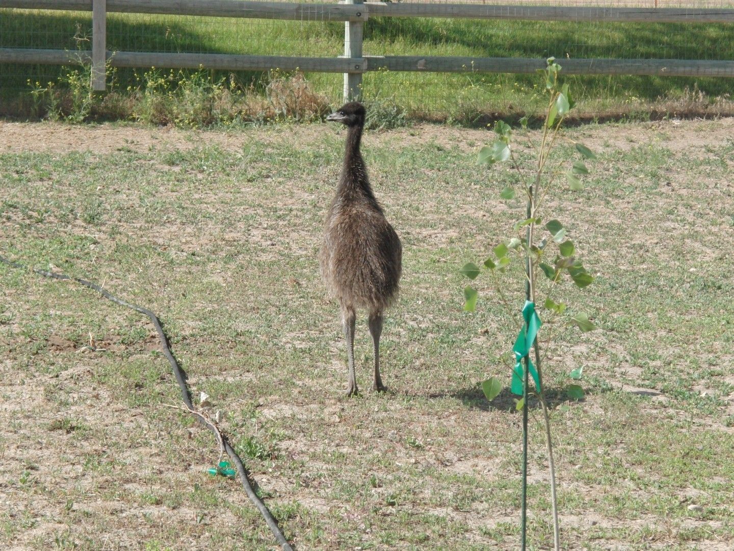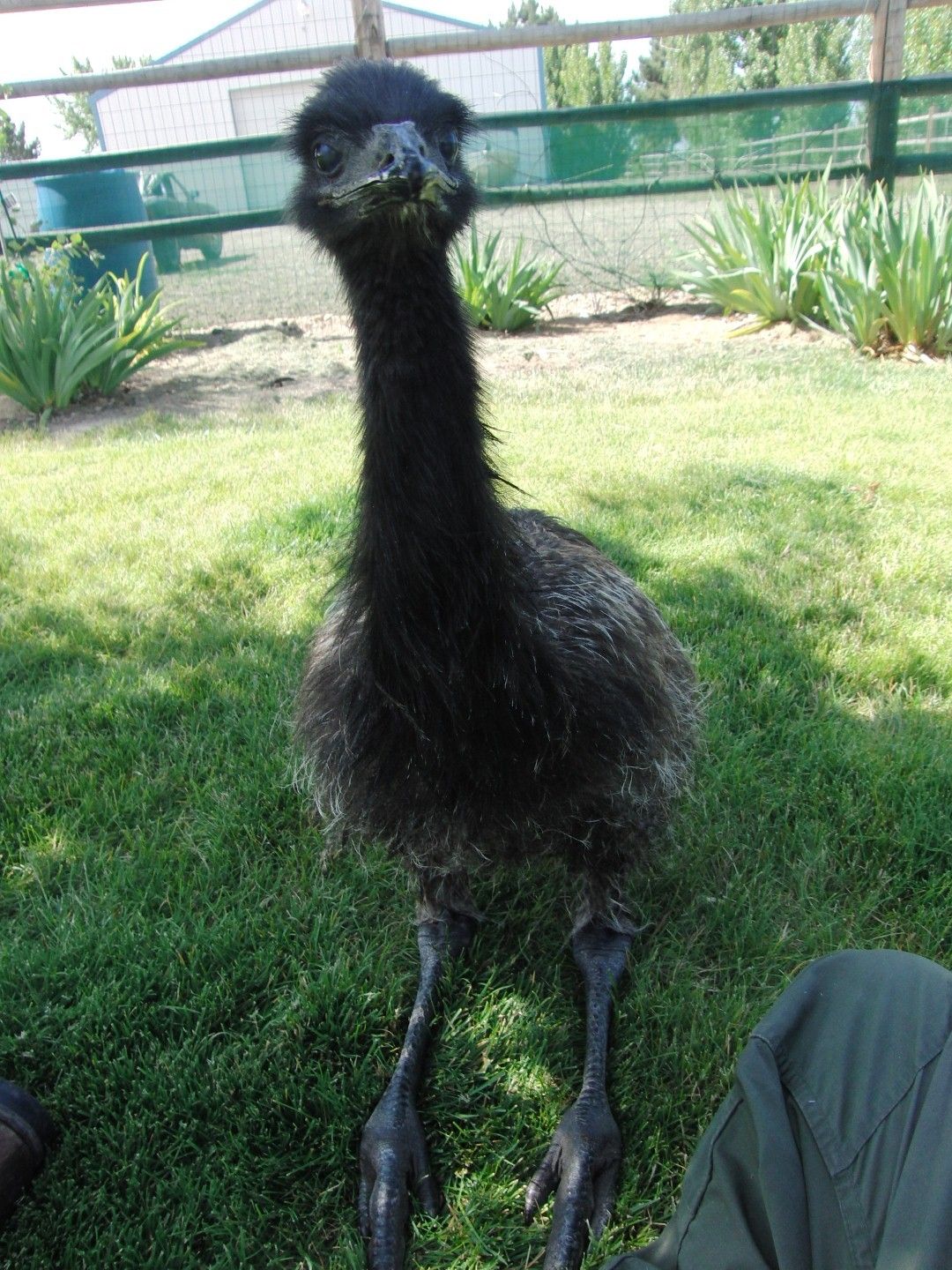 While sitting in the sun in the house-clearing, reading, I looked up to see an emu drifting through the gum trees. Behind it was what looked at first like a snake – a little black head bobbing in and out of sight. I sat very still until there was a big tree between the emu and me, then zipped over under it, to observe. The ‘snake’ was a chick no more than a week or ten days old. Just the one, and the male was walking ever so slowly to allow it to keep up. It was so small it was having trouble ploughing through eight inches of grass. This is the first time that this is happened (my chicks were about three months old when Eric the Emu brought them to the house-clearing for the first time.), and they approached to within the length of a tennis court. I was thrilled. It’s only the fact that ‘my’ emus interact with the wild emus (and the fact that there are no dogs or cats here) that allows the house-clearing to be on the wild emu’s ‘map.’ I saw them three times in all. Supreme Emu