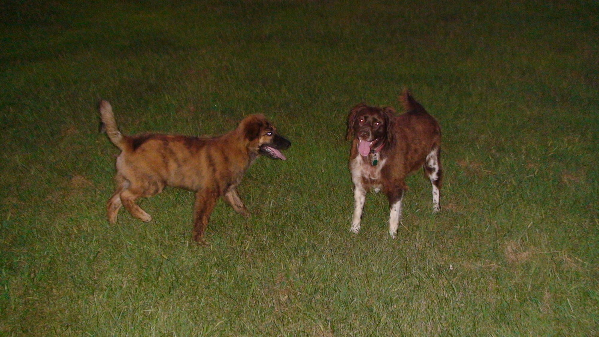 He may have gotten into his first raccoon chase a couple nights ago although I likely slept through most. Wind from south likely gave critter additional time before dogs realized it was there.