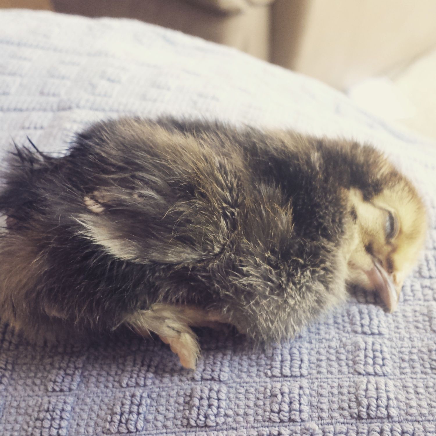 The undiluted lavender applied directly to the chick's vent acted like the chick version of anesthesia. Well, at least she had a good sleep?