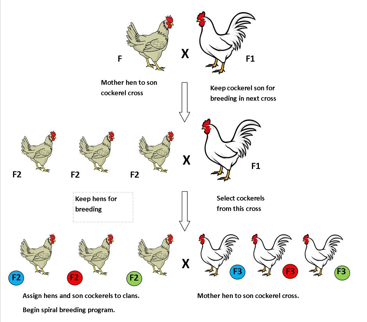 I'm looking to focus on a breed which I currently only have access to one line of and I've come up with the following plan for establishing a spiral breeding program with three clans.
