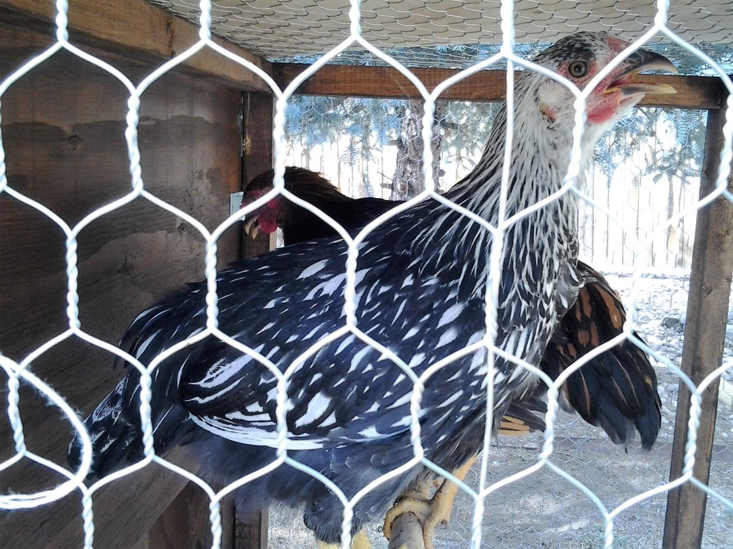 Seems like a pullet for the most part but I would need better pictures of the body and comb.OK. Now that we have established my Golden Wyandotte is a Rooster...here is a picture of my Silver Wyandotte bought at the same time. Since the photo was taken, her wattles have become slightly more pronounced. She does not have the noticeable saddle feathers yet like the Golden does and she is much more timid. The Golden is already pretty much a bully.