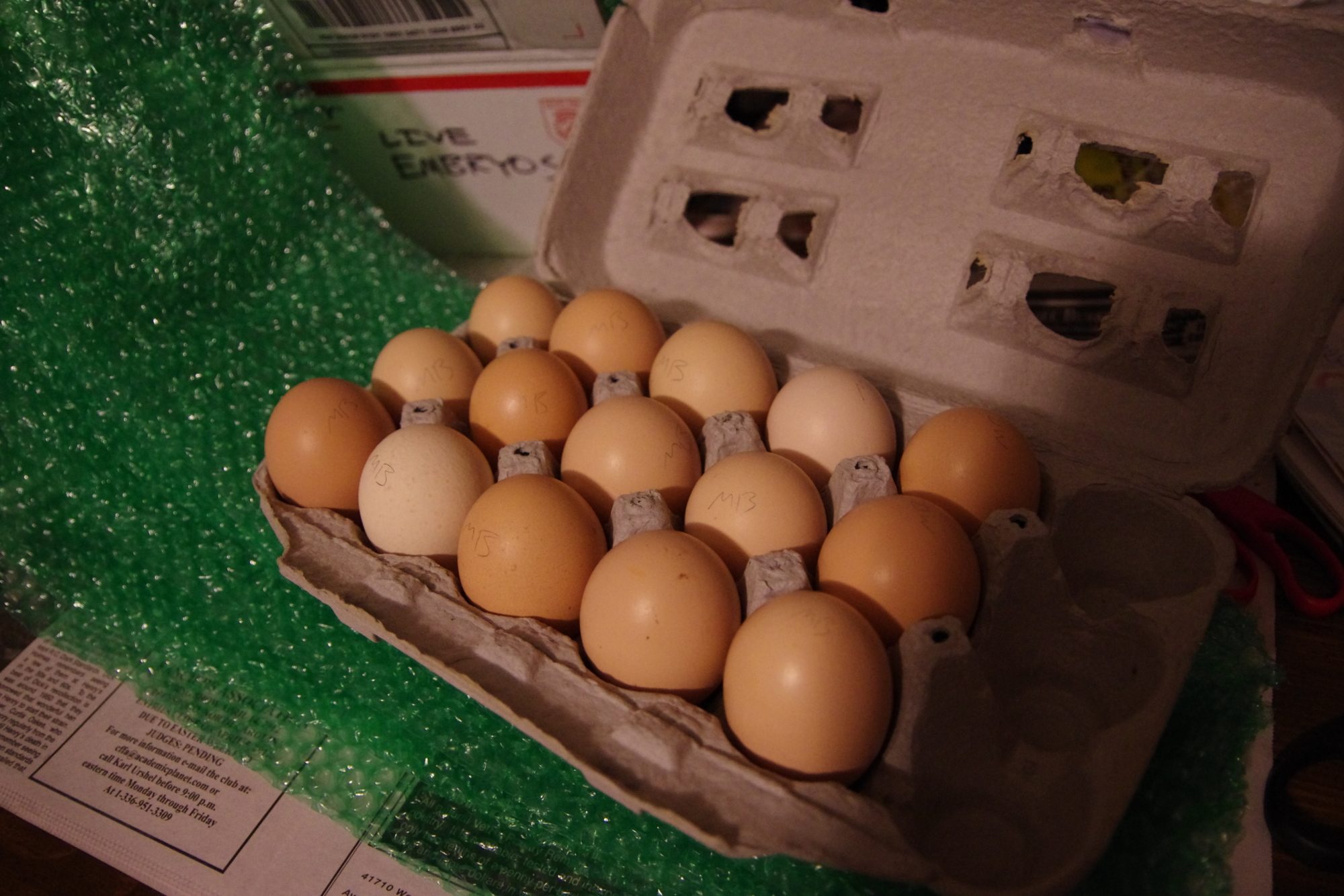 This is a picture of the Basque eggs from Skyline going into the Incubator:
