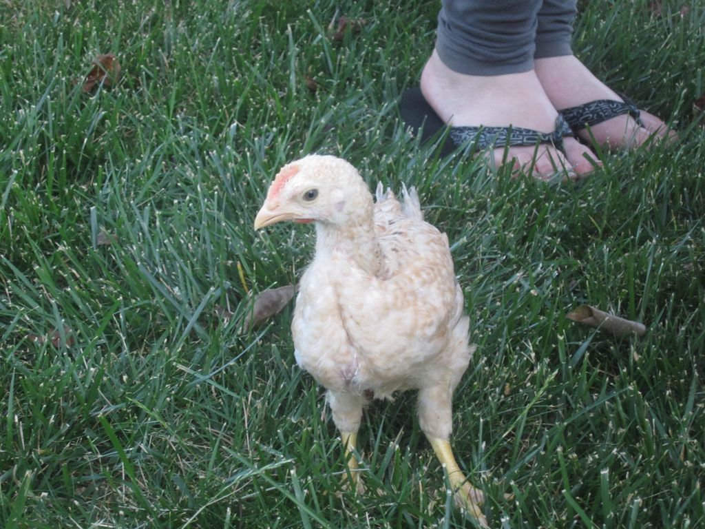 "Hello there chicken lady... any treats for me today?" EOs cuddling next to my silkies in the grow out pen.