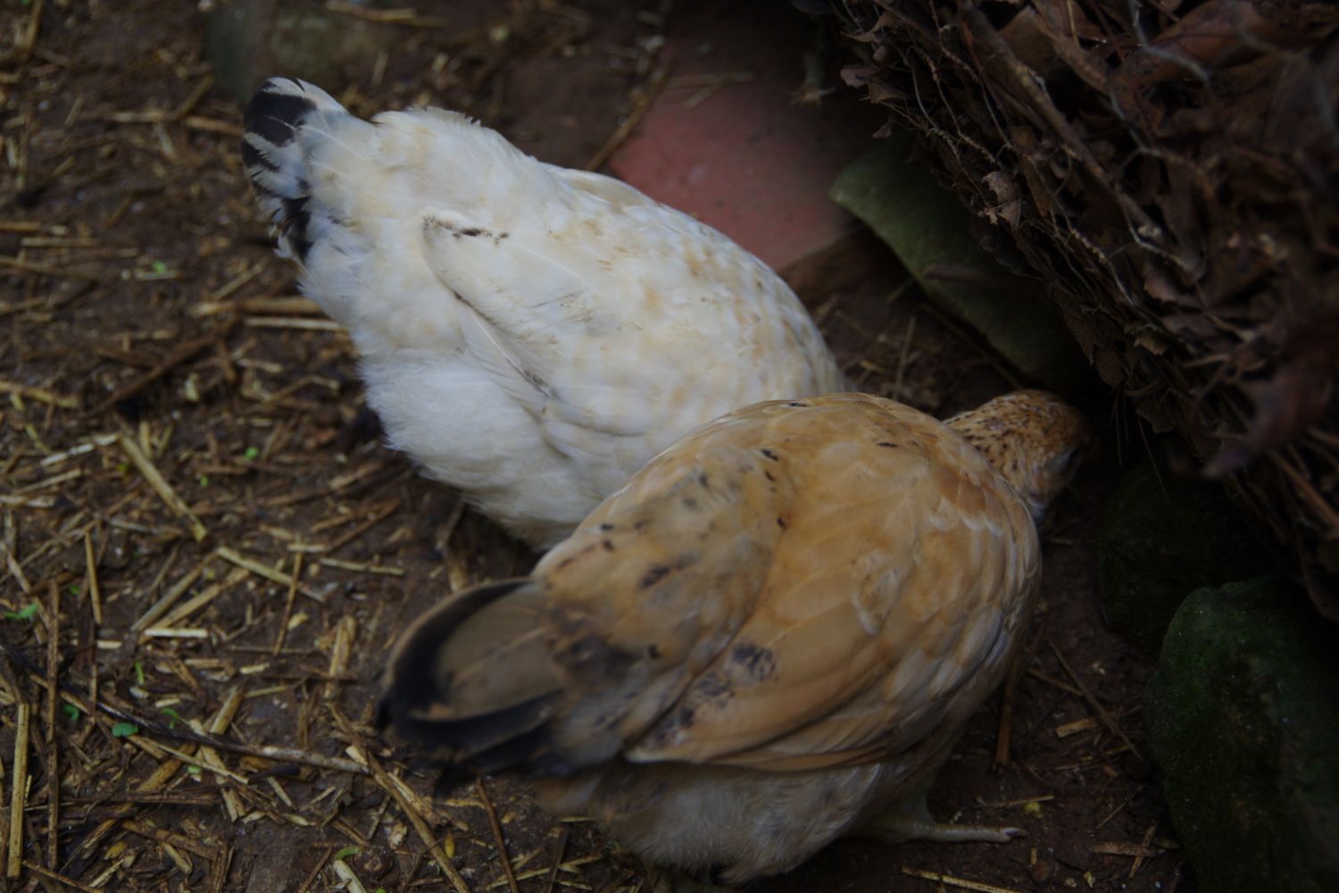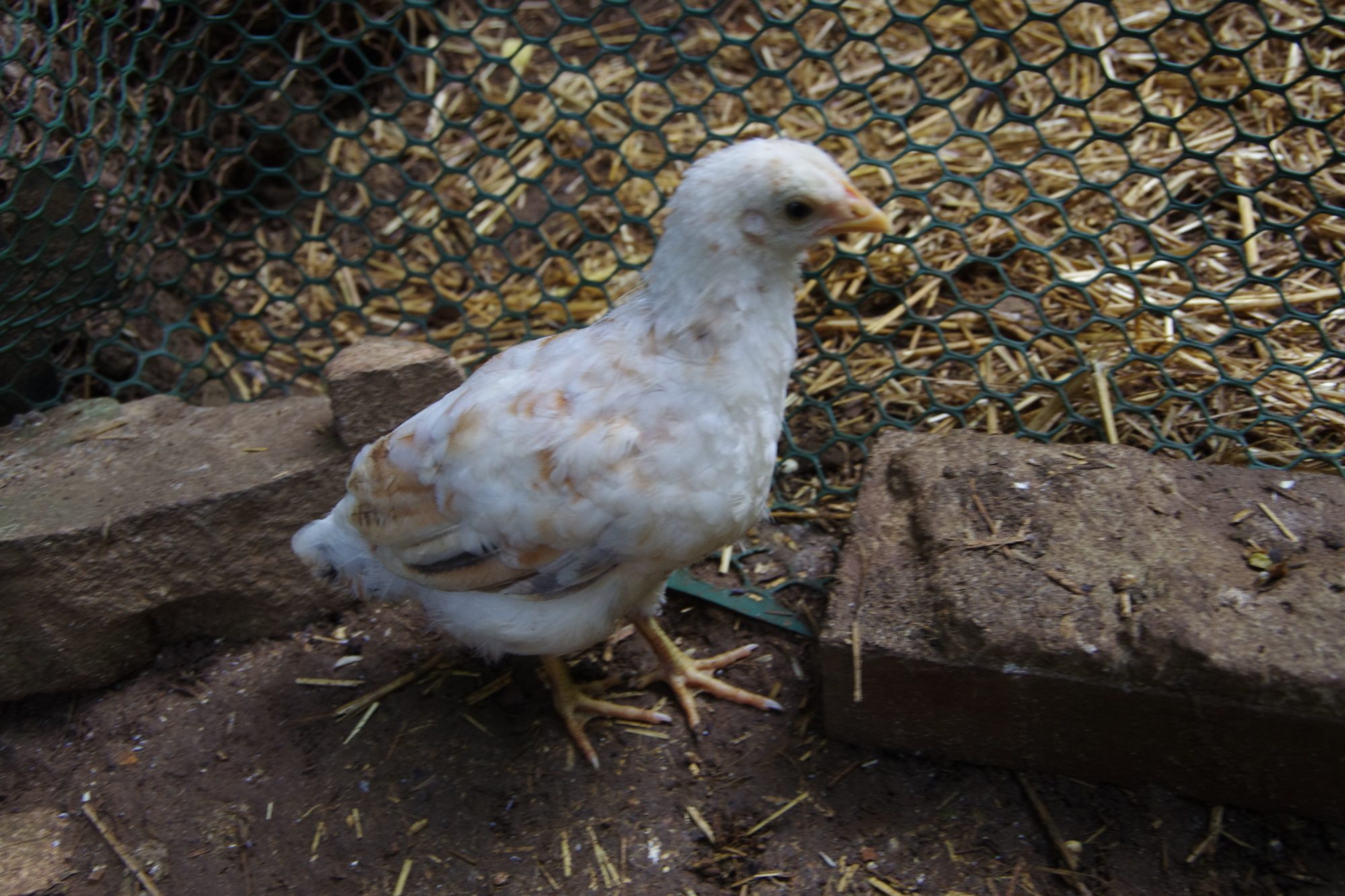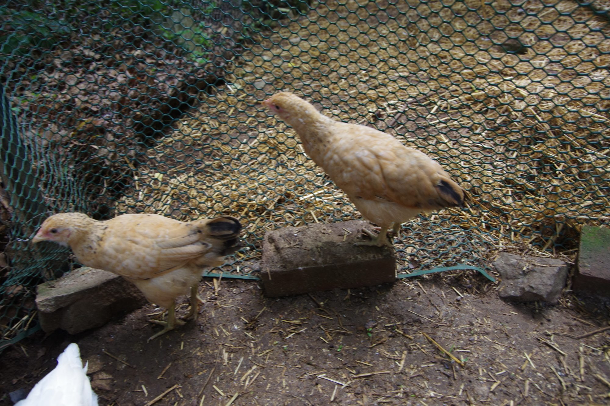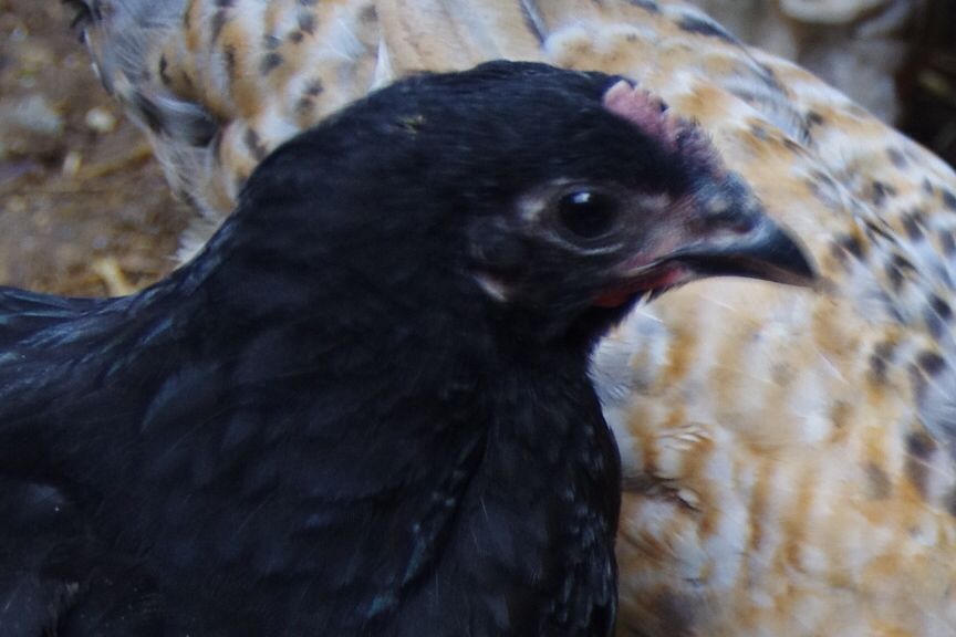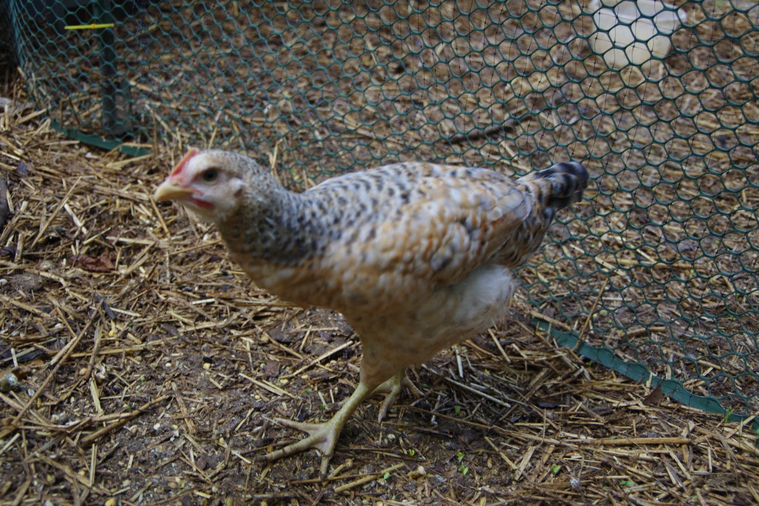 Rosie's pullet, behind so not showing her coloring much yet.