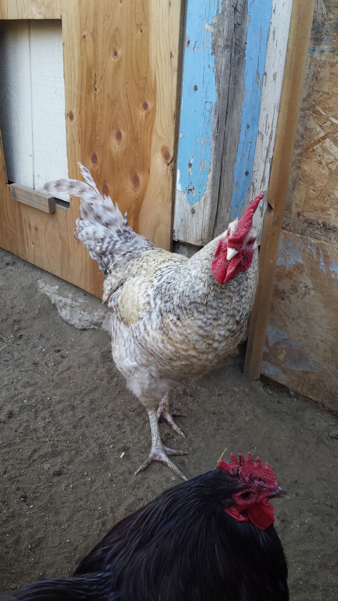 Another point on your cockerel, from this picture, it appears that he has a white beak and white legs. If this is the case, it would be a disqualification.. However, breeding him to those two pullets should work since they have yellow legs and yellow beaks and most importantly, the yellow is dominant. Any chicks that you get from the pairing with white legs and beaks should be culled unless you are not too worried about that sort of thing.