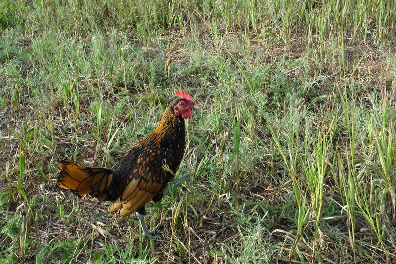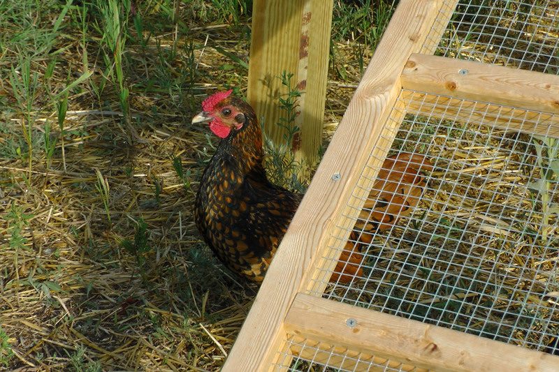 I've got 8 bantams - 7 hens and 1 rooster. They're free-range birds, outside at 7:30am and back in at dusk. They've got good quality feed (& lots of it), a 4 by 8 coop and 3 nesting boxes (but no eggs yet).