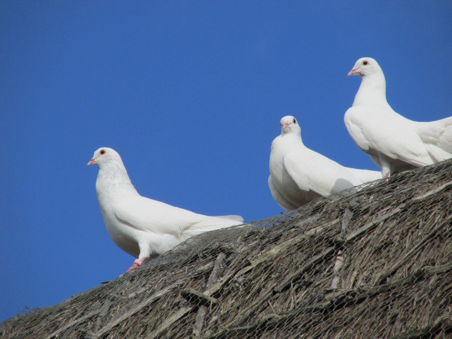 WOW! Pretty birds!!! I've never seen that breed before! Can they even fly?