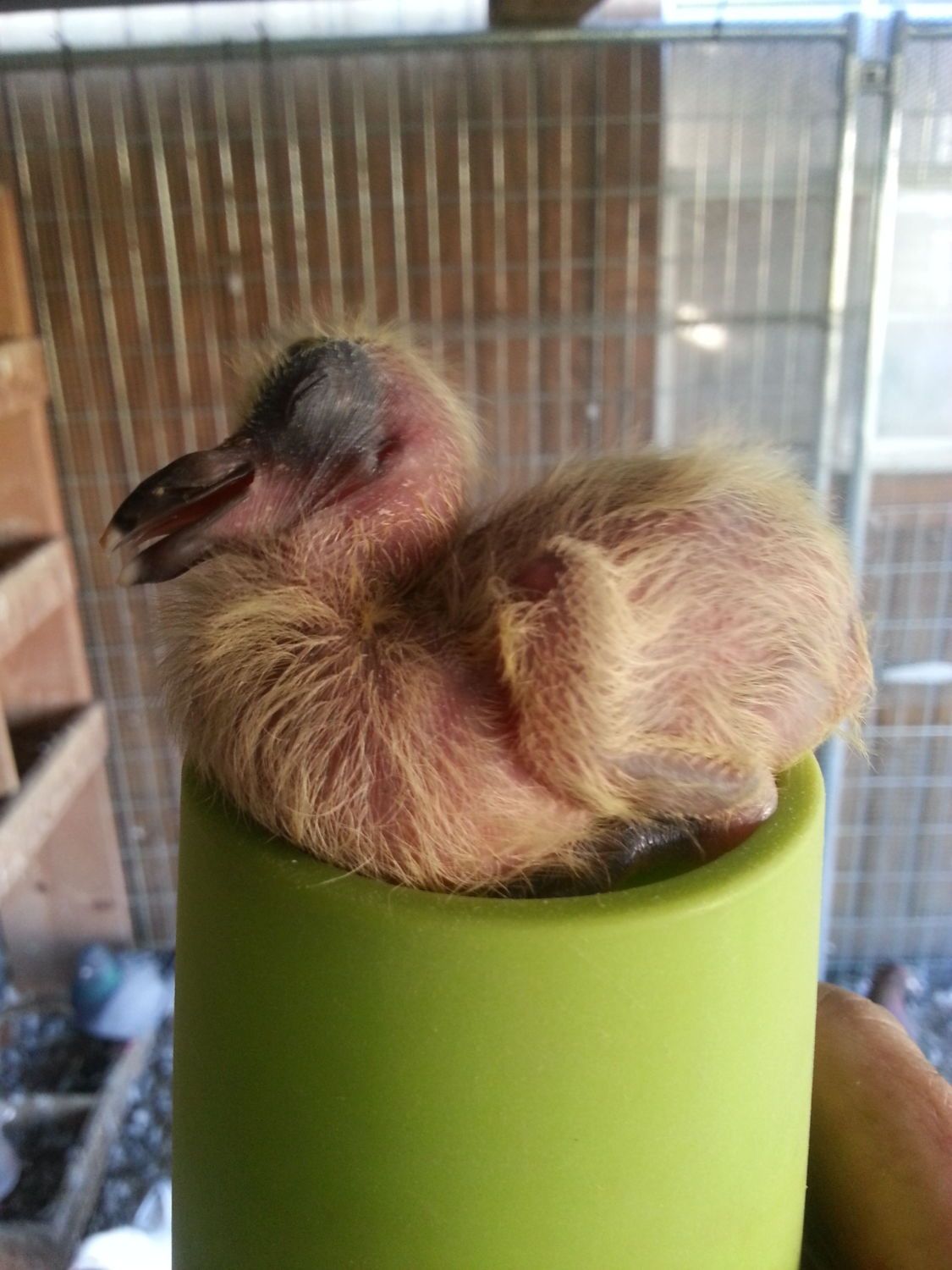 My wild youngster. Found him injured in the parking lot where I work, unable to fly and favoring his wing. He is now practicing flying and much more healthy looking, although I still don't know why he lost the feathers on his head, which makes him look silly.