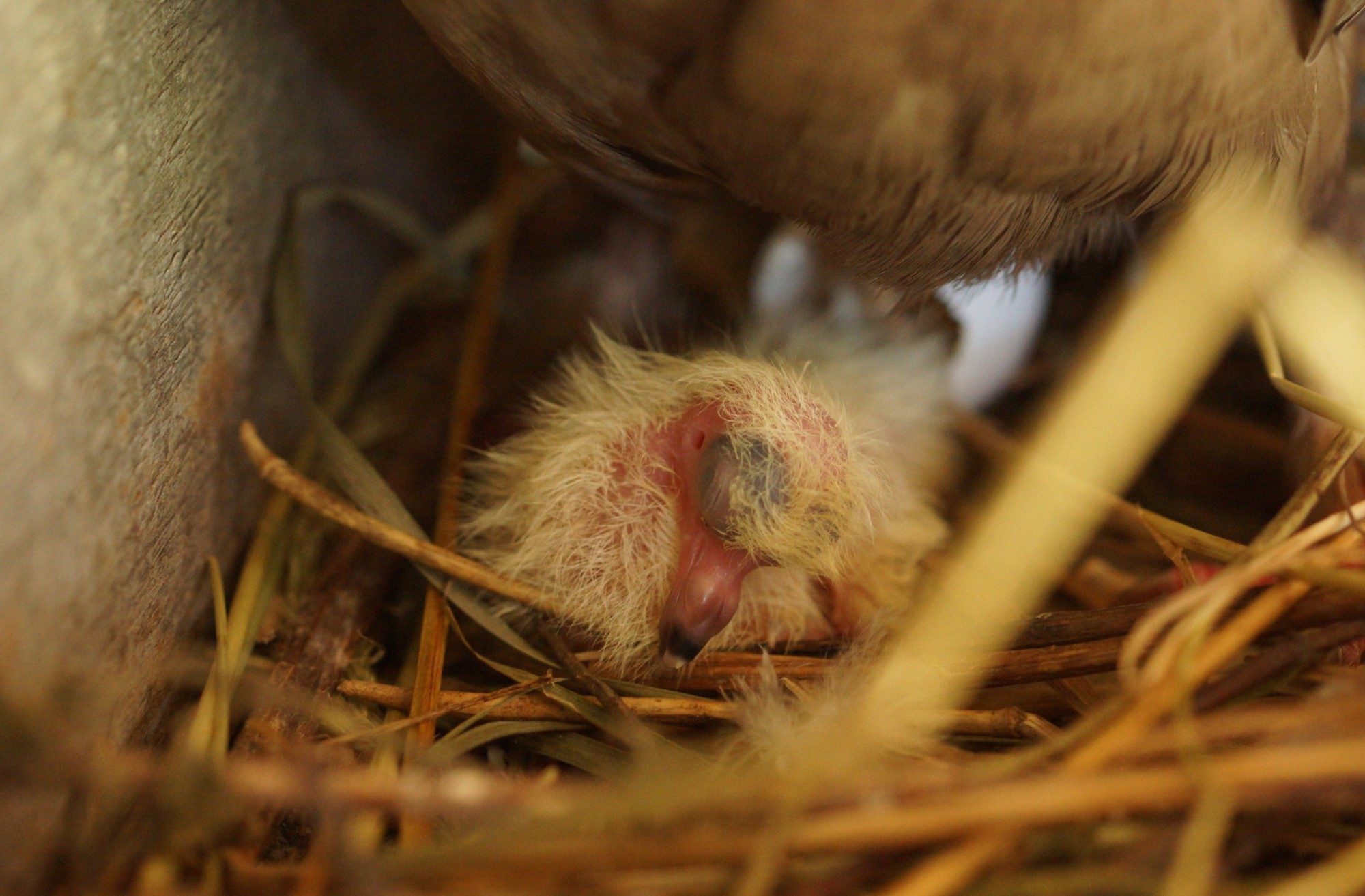 newly hatched baby roller / feral cross (mom is Nutty)
