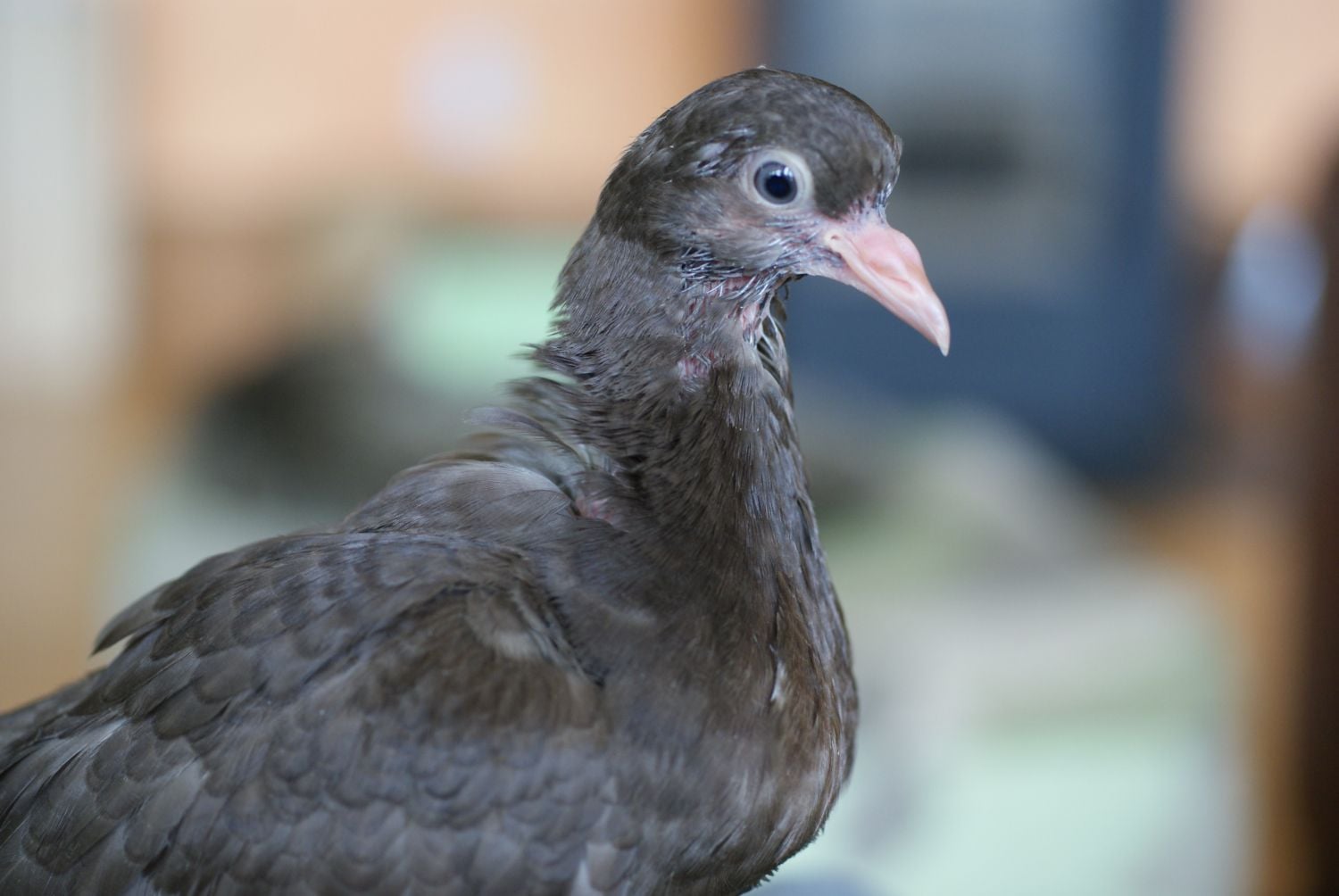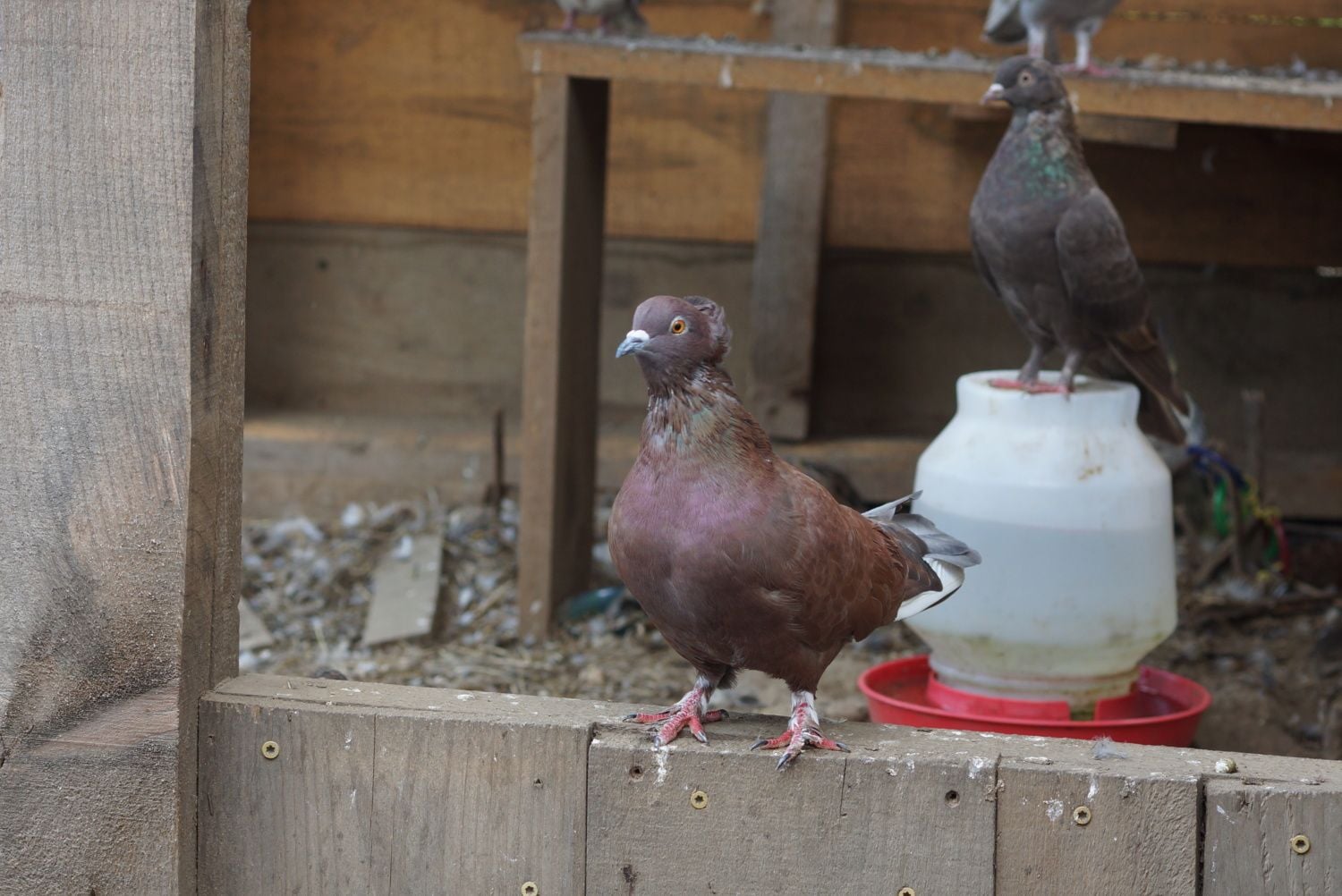 my lovely CapuchinXOriental roller mix, and the chick she hatched. They still stay together, even tho they're in the coop with the other pigeons now. It's so sweet