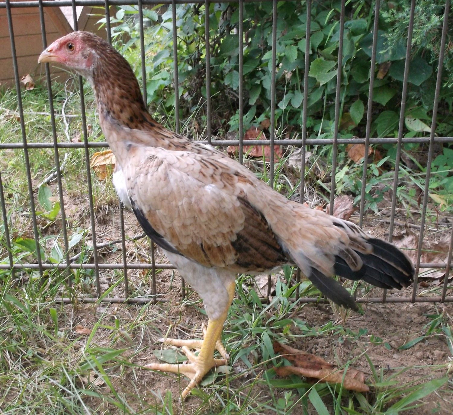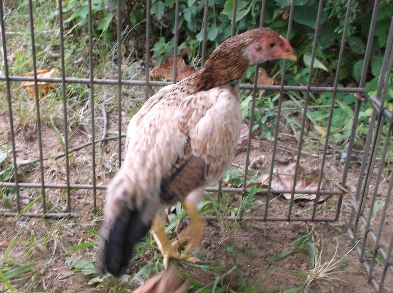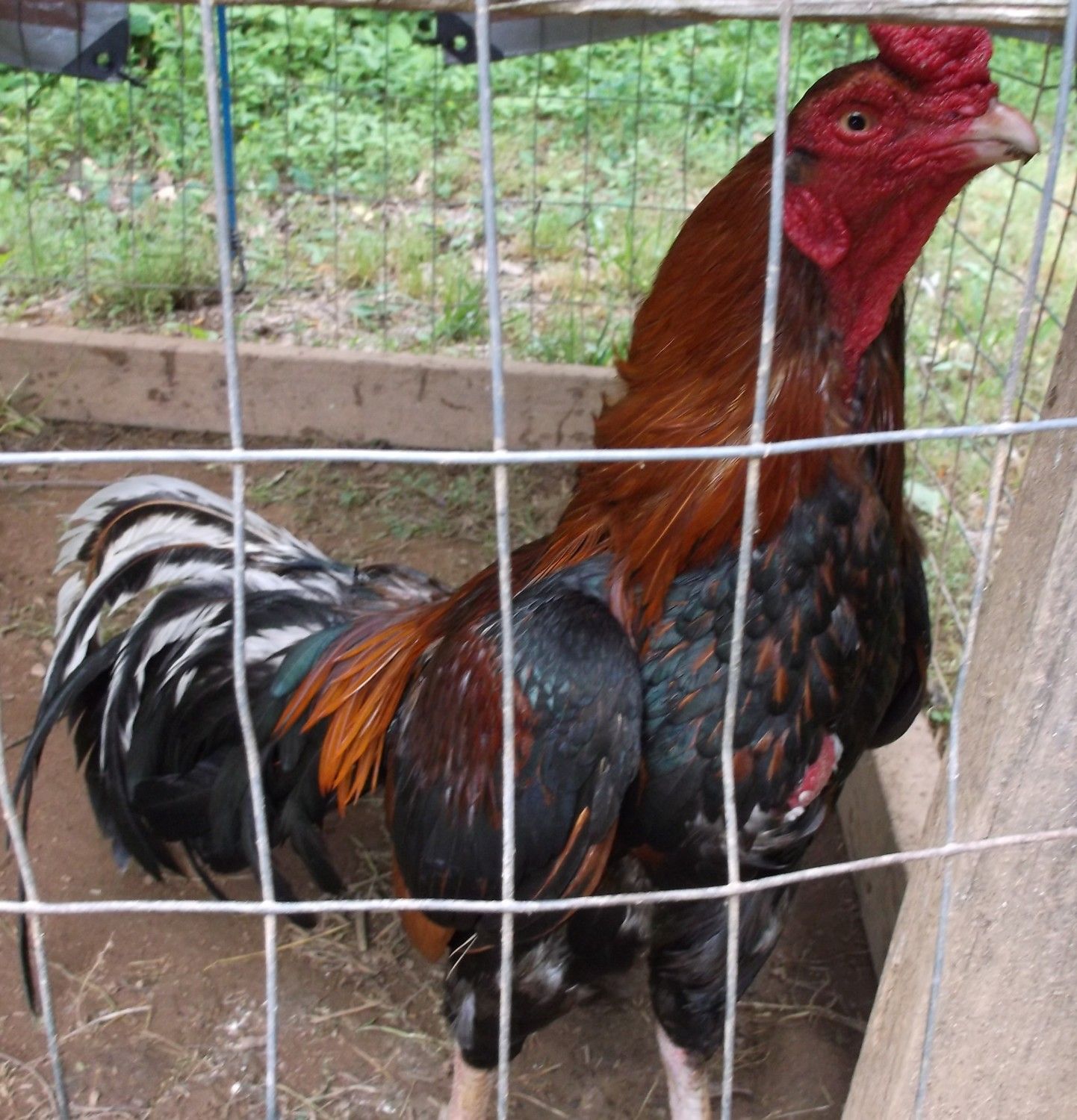 straight Reynolds bullstag . almost a pound lighter than his father . his sister about a half pound lighter than her mother. this may be from my feeding program that is geared towards the slow growing cubalaya(I make sure the asils get more feed though) carr's spring hatches are larger in the fall than my spring hatches but seem about even by the next spring. I bred the sister back to the father this year to see what size the linebreds will come. will probably breed this bullstag back to his mother next spring to see if he gains any weight by then.