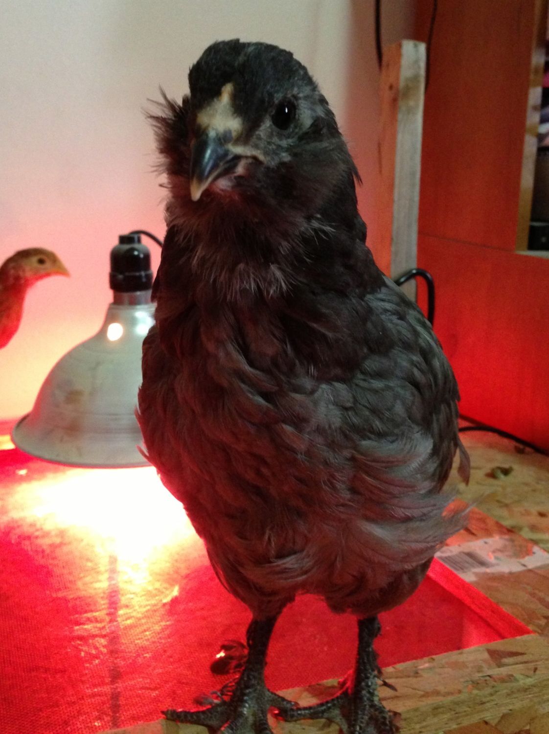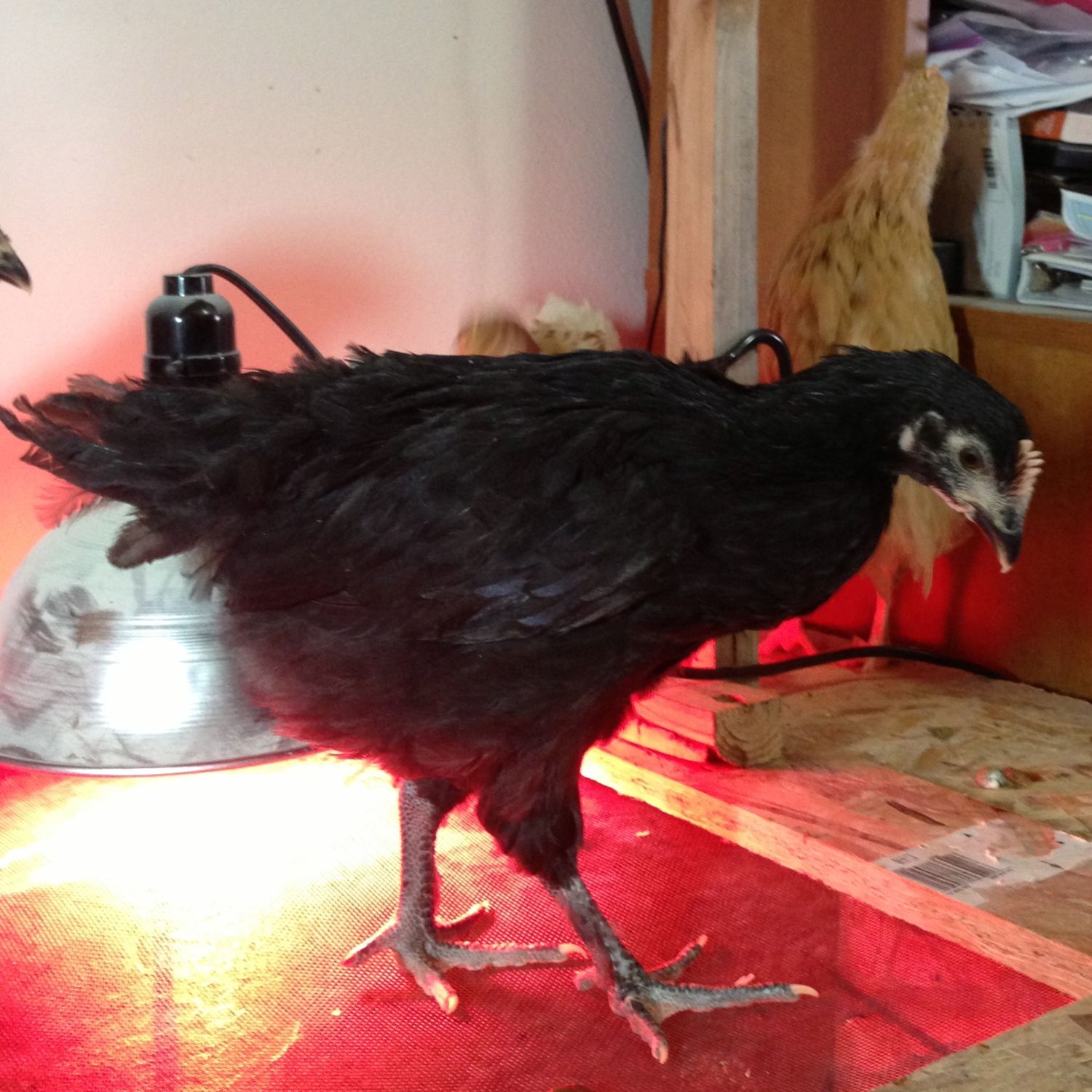 This is the replacement (about a week later, and therefore older in this pic) She is a Blue Marans/Americauna OE. Almost 7 weeks. (Breeder Stock)