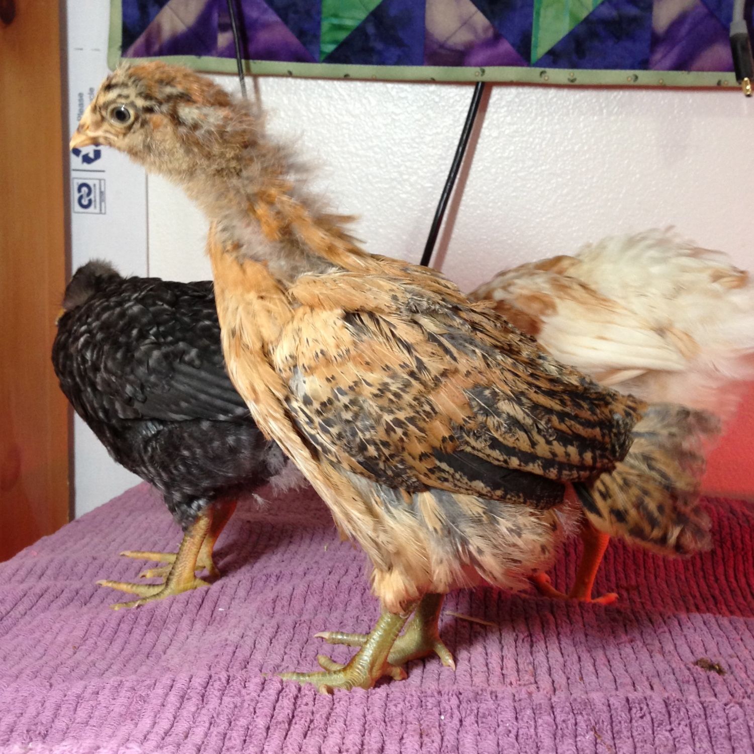My other chicks I hatched recently are EE/RIR mixes- Helene and Jan, then these I will probably give to a friend: (Coco Maran mixes are CeCe, Carol, Cal, Valerie, and Nelly.)