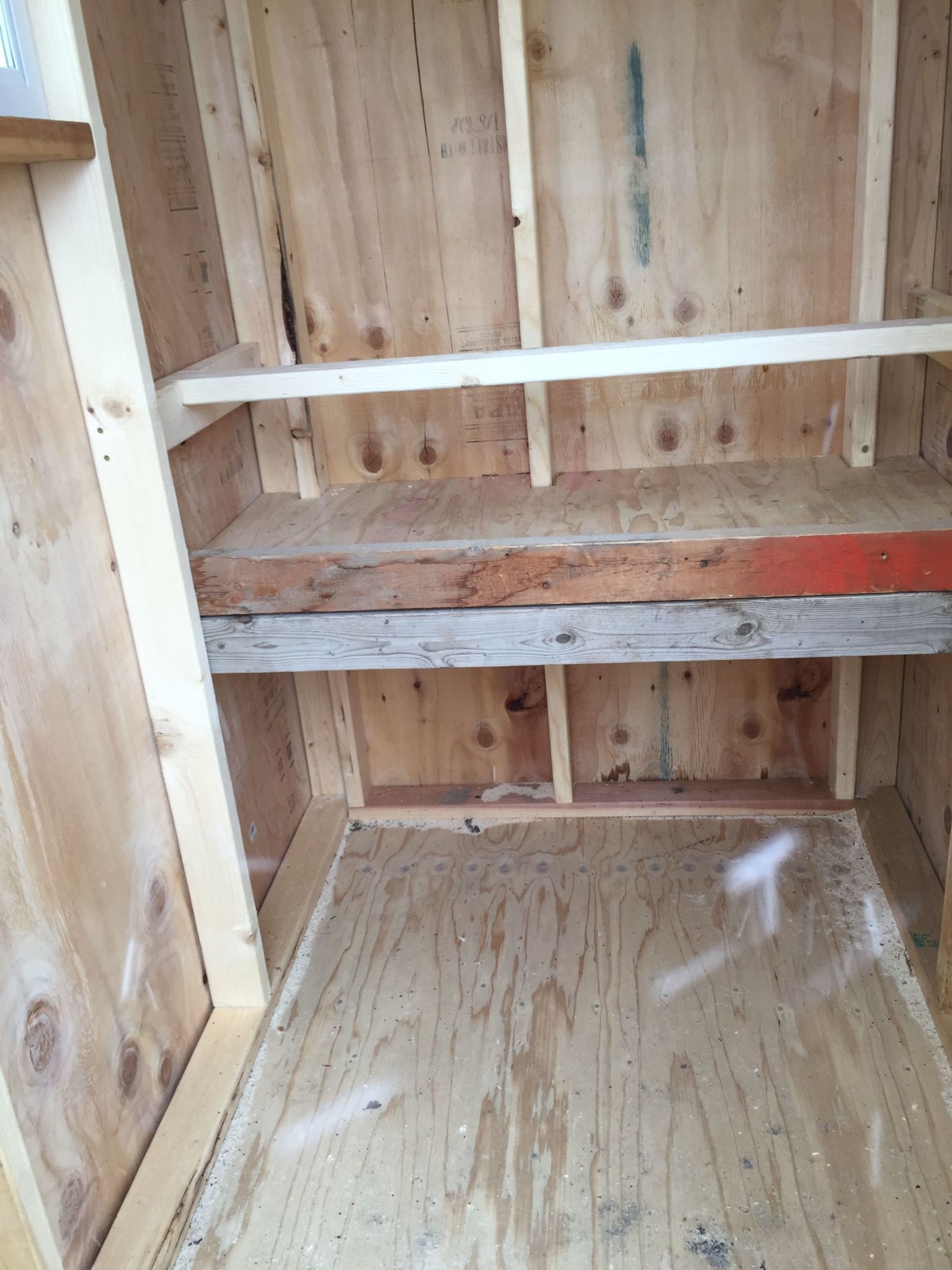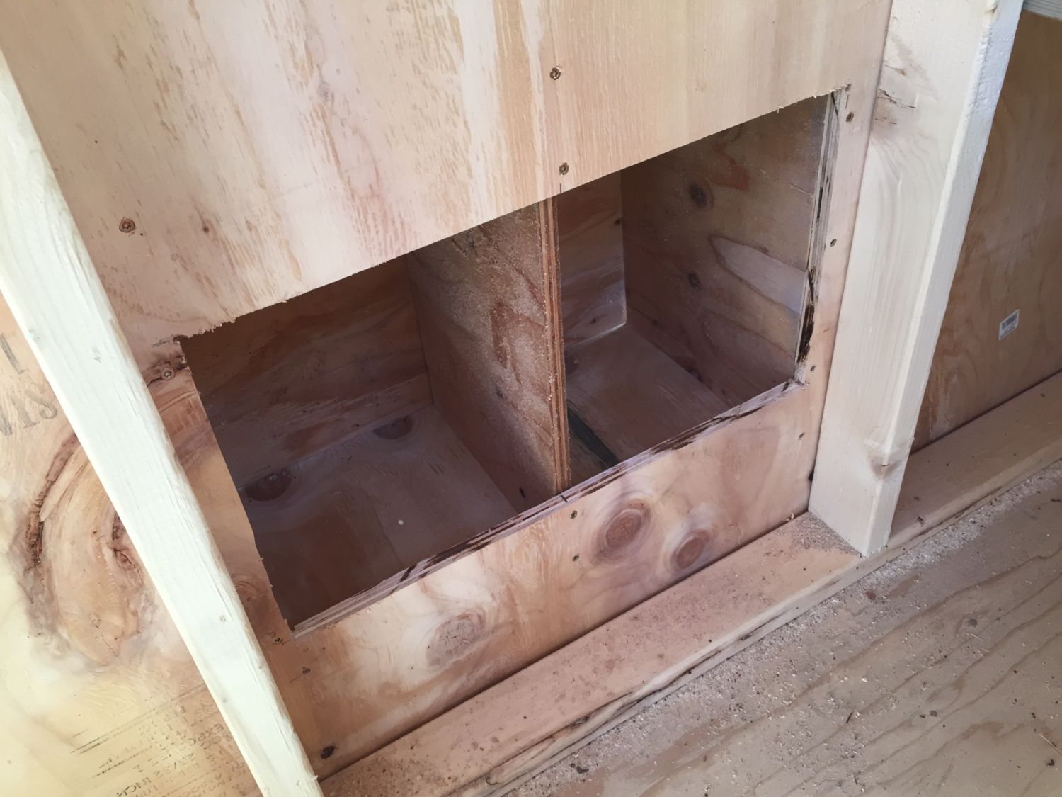 Here's the inside with Sweet PDZ in the poop tray under the roost and shavings on the floor and in the nesting boxes.