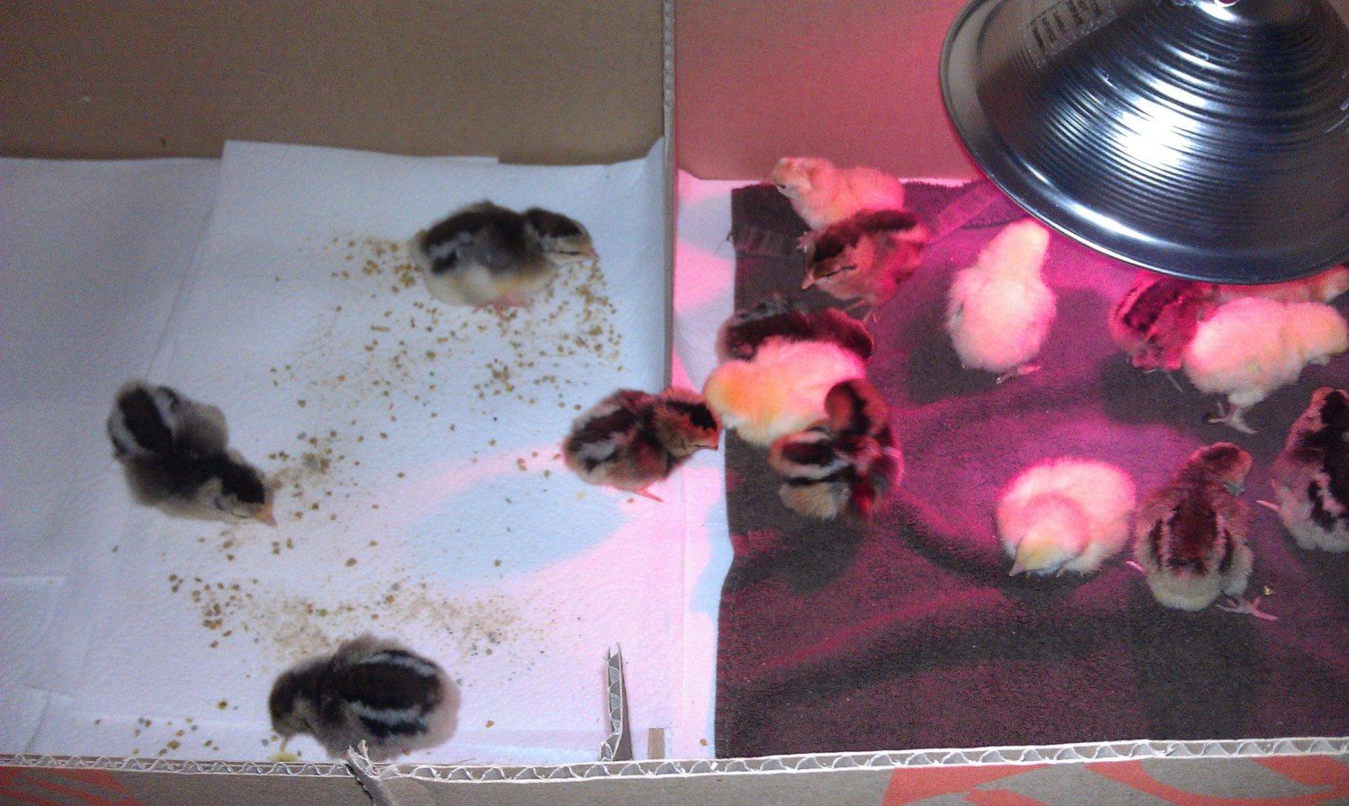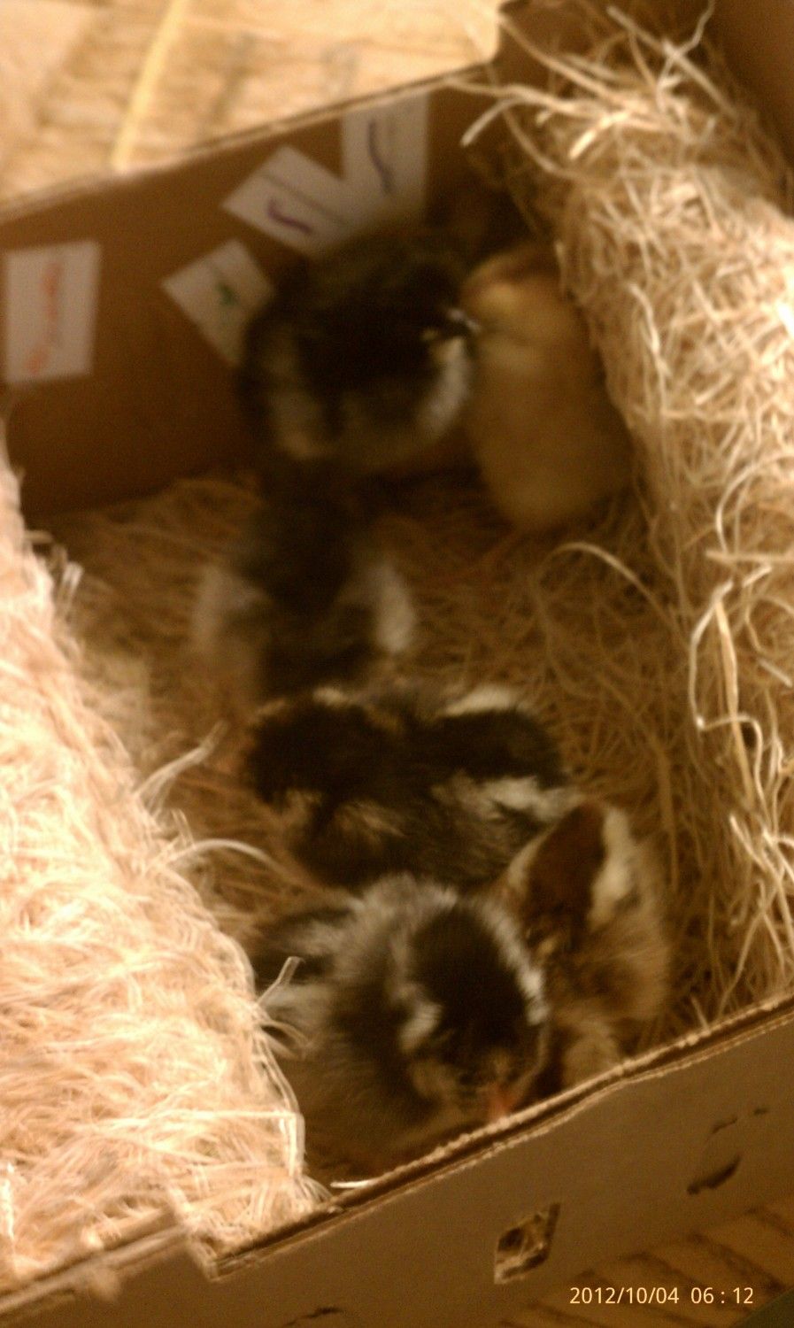 I received 8 chicks this morning, 5 penedesencas for me and 3 splash marans for my co-worker. One penedesenca DOA and one sluggish on arrival who died this evening. The remainder are actively preening, eating and drinking. Crossing my fingers that they all do OK!