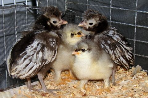 Went to the feed store on the appropriate date and came home with 6 chicks plus 1 extra EE = 7 +3 or 10 birds at this point (cheek poofs decrease willpower, you know...)