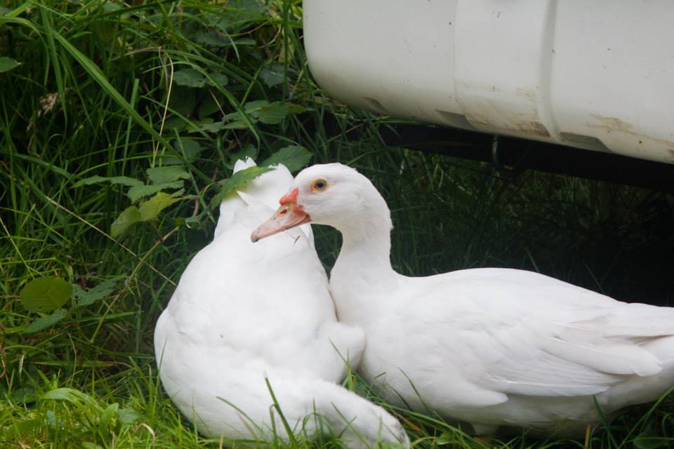 I've had my two ducks for just under a week (a week tomorrow) and yesterday I opened up the cage to see if they'd venture out, they came out for a bit but didn't go far, after a while I put them back in, today I let them out again for a good few hours, they chased off the neighbour's cats so that's solved my worry of them getting attacked, and loved it, ate many slugs, had fun hunting for beetles and spiders, it was so lovely to see them out and happy! We're building an extension onto their pen so they will have more room but for the time being they will be coming out in the garden whilst I'm there (I have a lot of animals so spend a lot of time in the garden