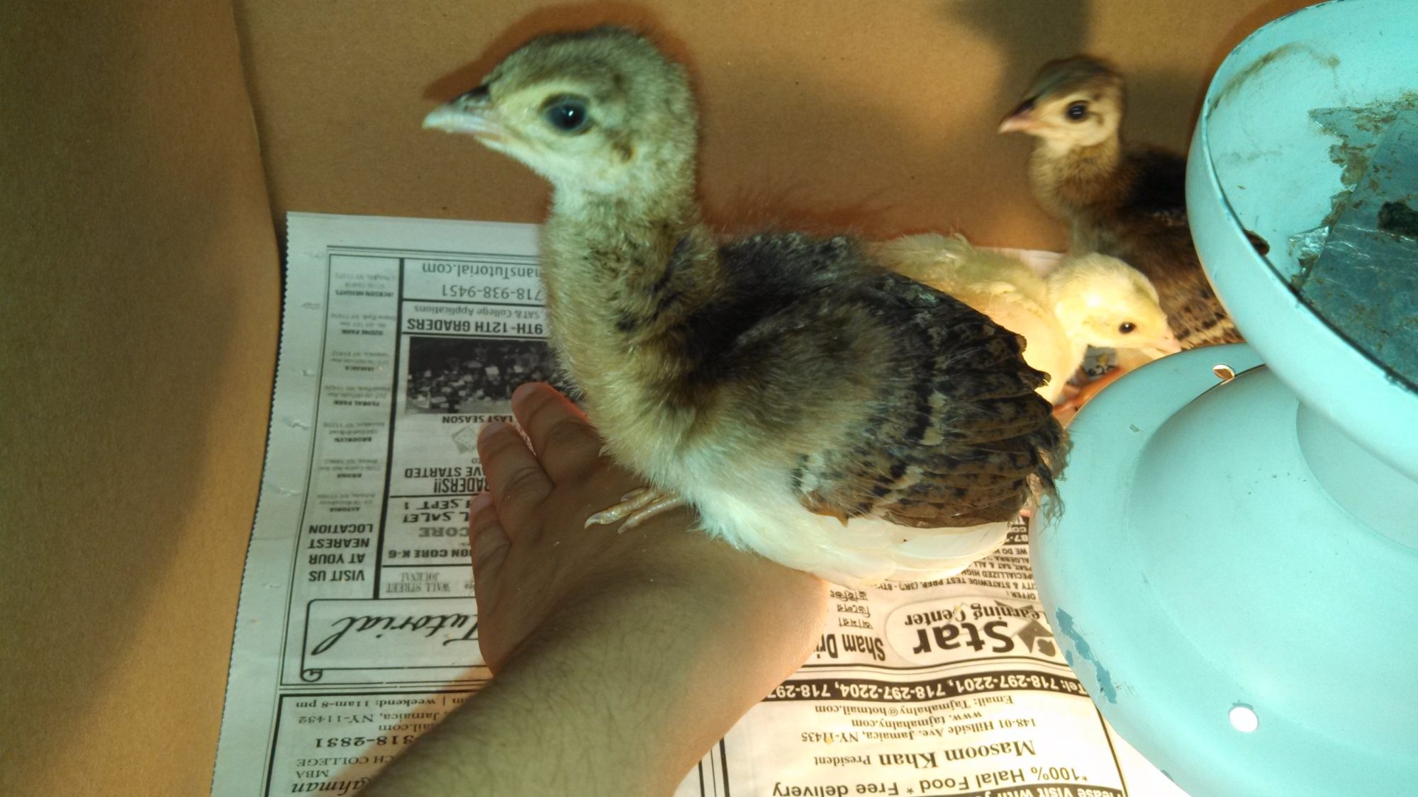 A side question, what do you guys think of the the babies' coloring? Is the white and black feather mix normal for India blues?