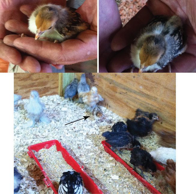 Does anyone have any idea what breed this is. It is one month old and tiny. It seems very healthy and is extremely active. It scratches with the best of them. You can get an idea how small it is from my hands and the group shot with other one month old bantams.