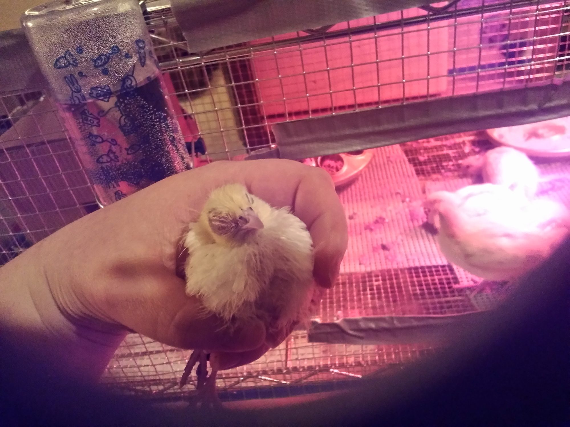 One of the chicks escaped and fell to the floor, I'm not sure which one. All of the others seems fine. I do also have chickens, they are kept separately and I'm trying to minimize cross contamination.