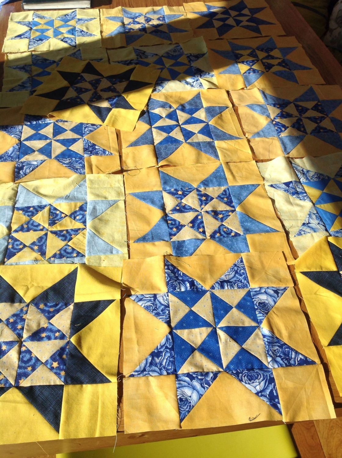 I am almost done with them, had to get more blue and will post a pic soon so you will have 2 different color blocks from me. They are not so bad if you sew and cut on the diagonal and just make sure you are spot on with your measurements and sewing. Some have gone to the what to do with you pile, oh well practice makes perfect I keep telling myself. Will be glad to be able to start on the next swap. This is not one to leave for the last minute that's for sure.