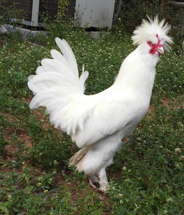 My white silkie Slippers, my bantam Easter Egger Chip (he's the sweetest thing and loves to jump on my and rub into me for attention), and then my cuckoo maran buff Orpington mix Henery. Gotta love roosters.