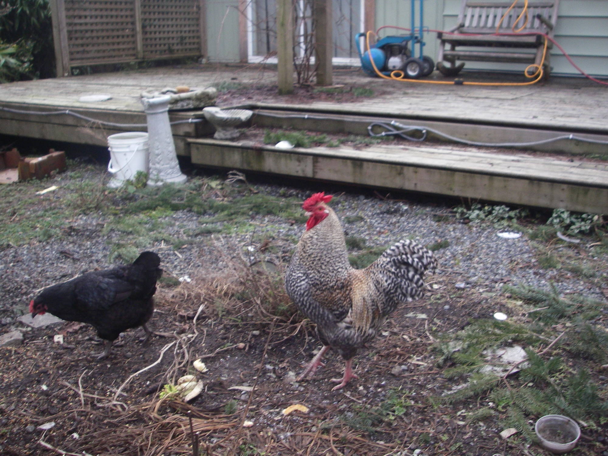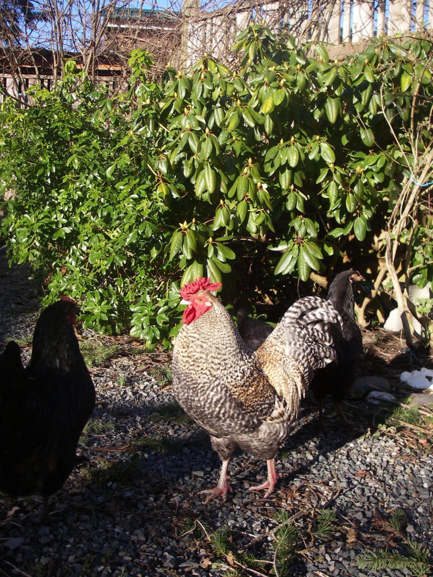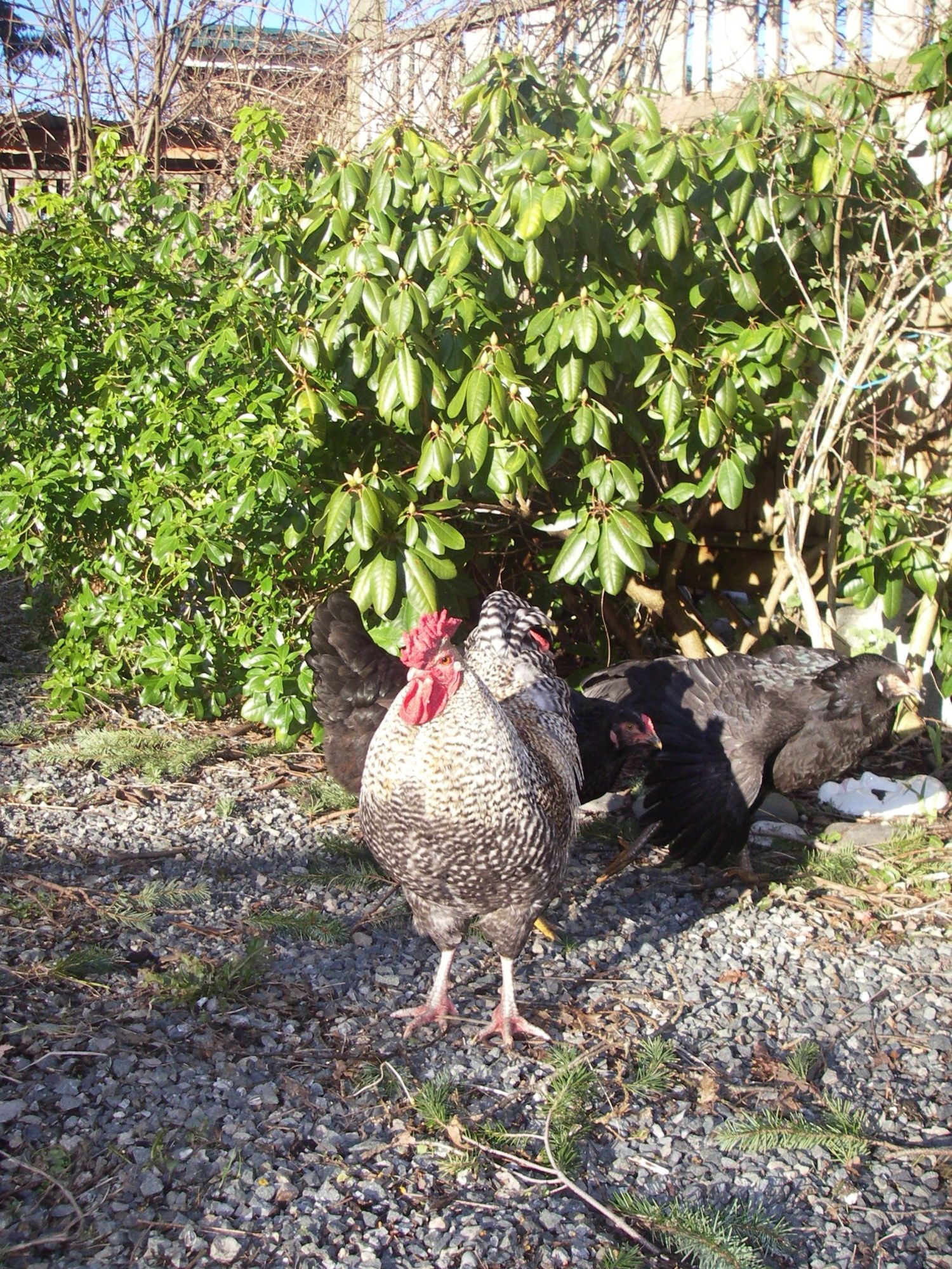 This is Bert Jr, he is a "Toad". A mixture I made myself. He is 3/4 CX and 1/4 Rainbow. He is even bigger today, but alas the single comb is not so impressive after a Minnesota winter and a little frostbite. I am currently breeding him back to his sister and some CX hens to make more toads. They get larger than CX's and seem to be longer living while being as sweet and luvable.