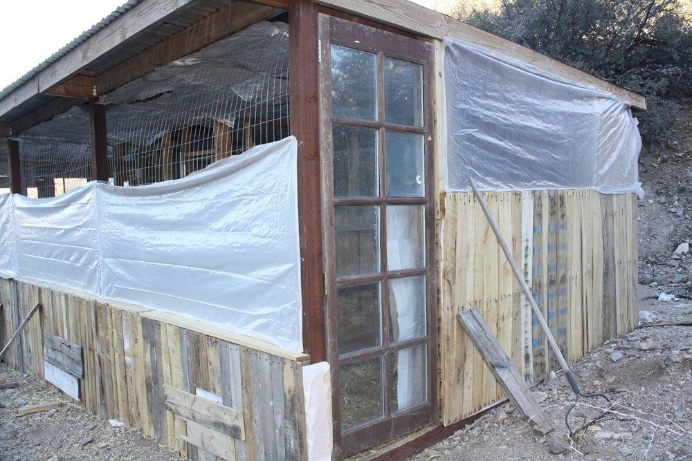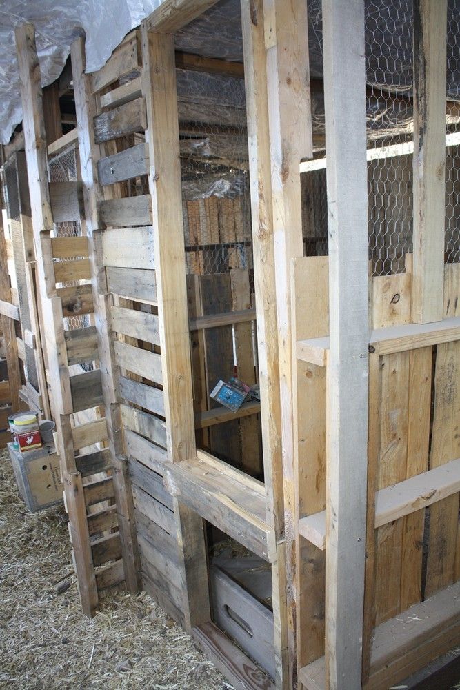 My new chicken house, 12x24 is mostly pallet wood. Pole construction, the posts and bottom boards are treated lumber bought new, all the doors, windows, boarding, partitions are pallet/recycled materials. I did have to buy new tin for 2/3s of the roof, but still have a lot less into it than what new material would have cost for the whole thing.