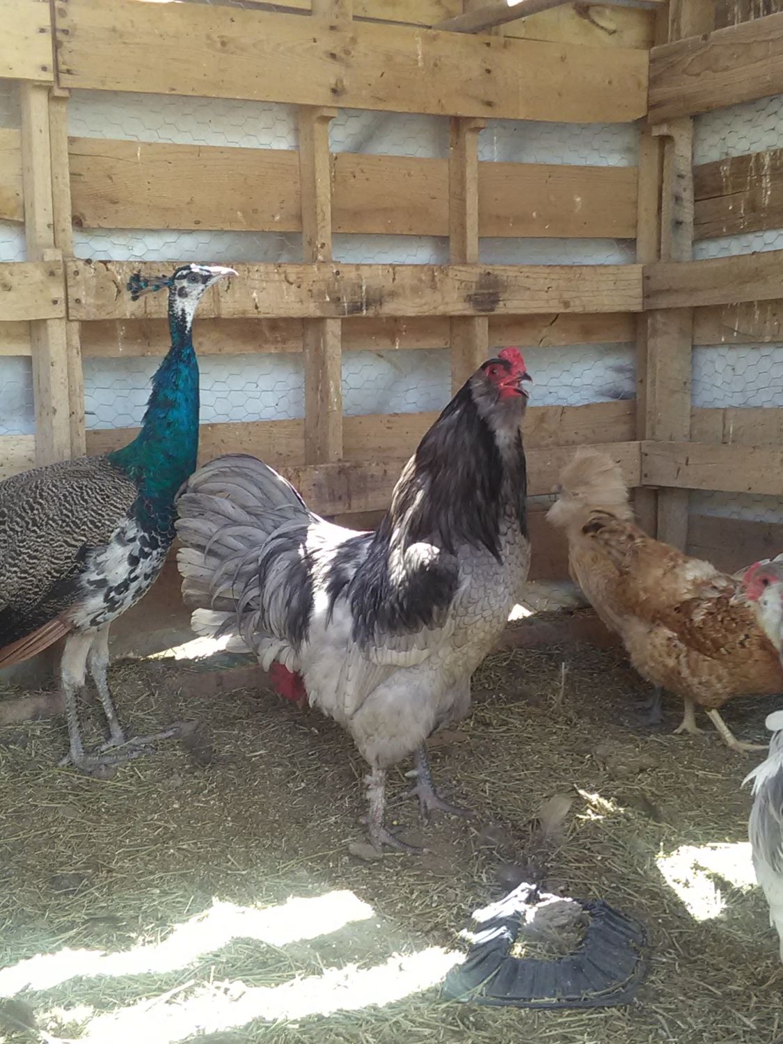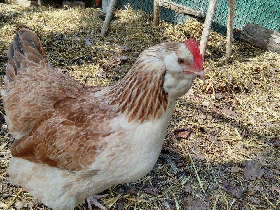 I hope that photo comes through of my favacauna. Mom is a salmon faverolle, dad is a blue Wheaton Americans.