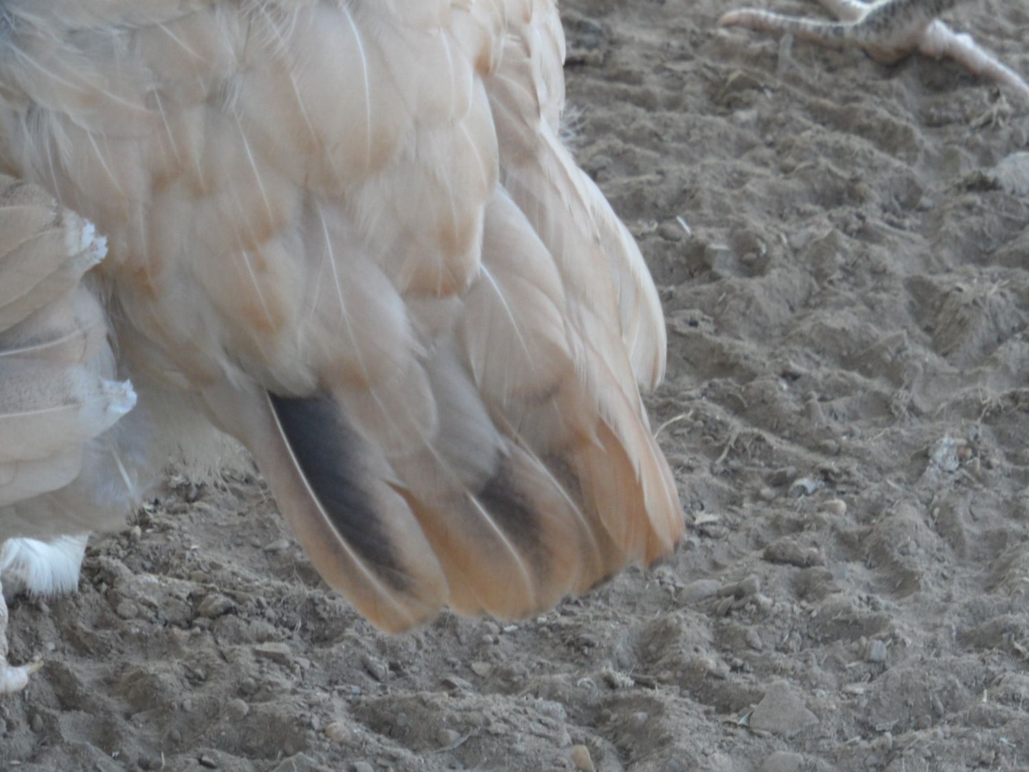 When it did, I noticed that the underside of her tail feathers are a dark gray. Then I noticed her wing feathers that fold up under when she is walking, were also. Is that a