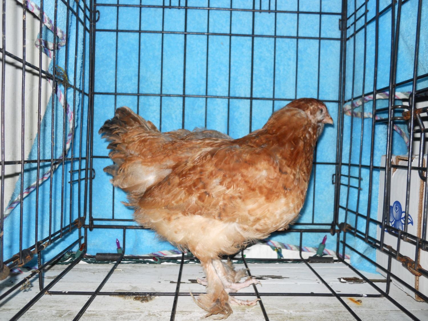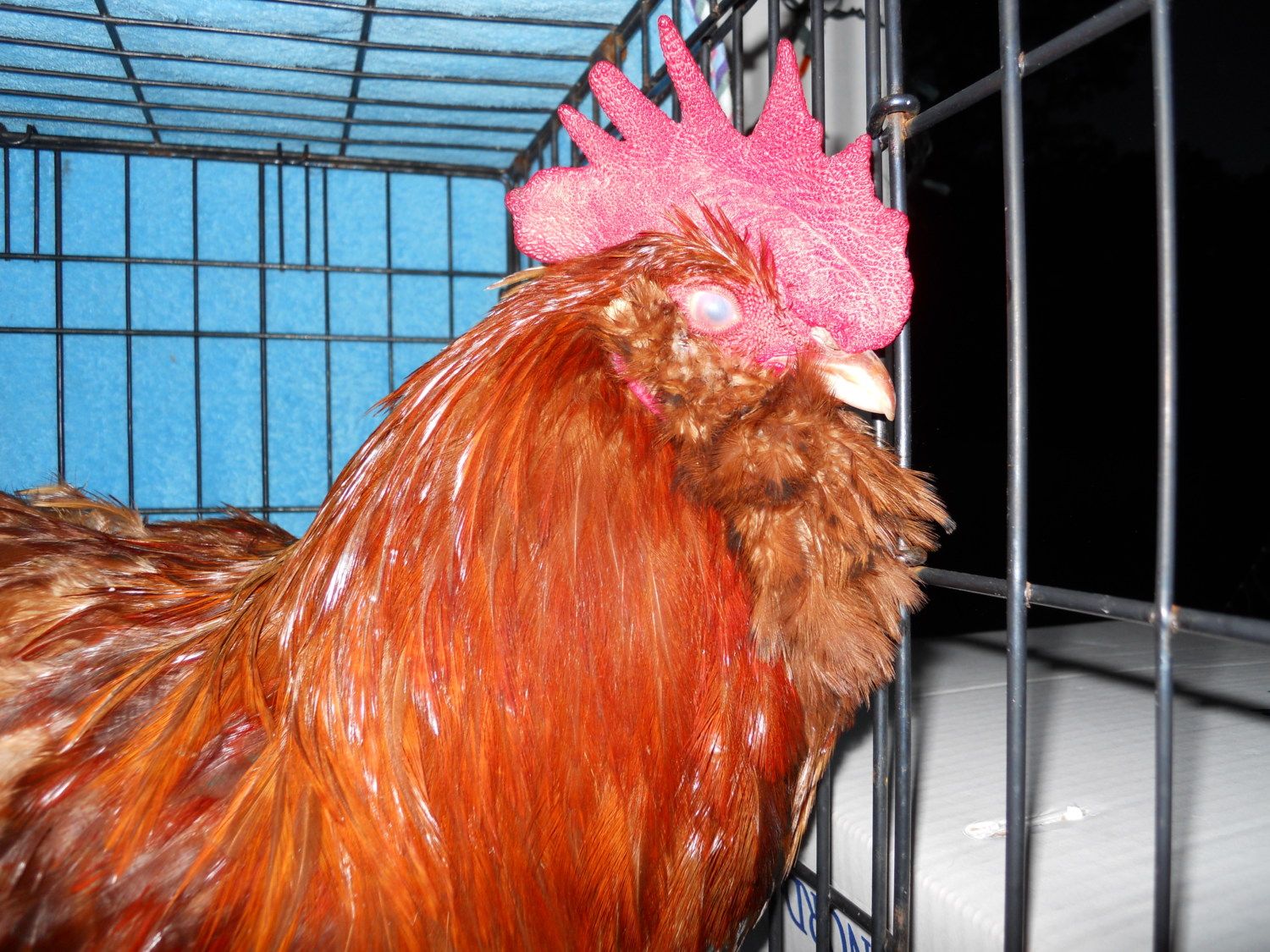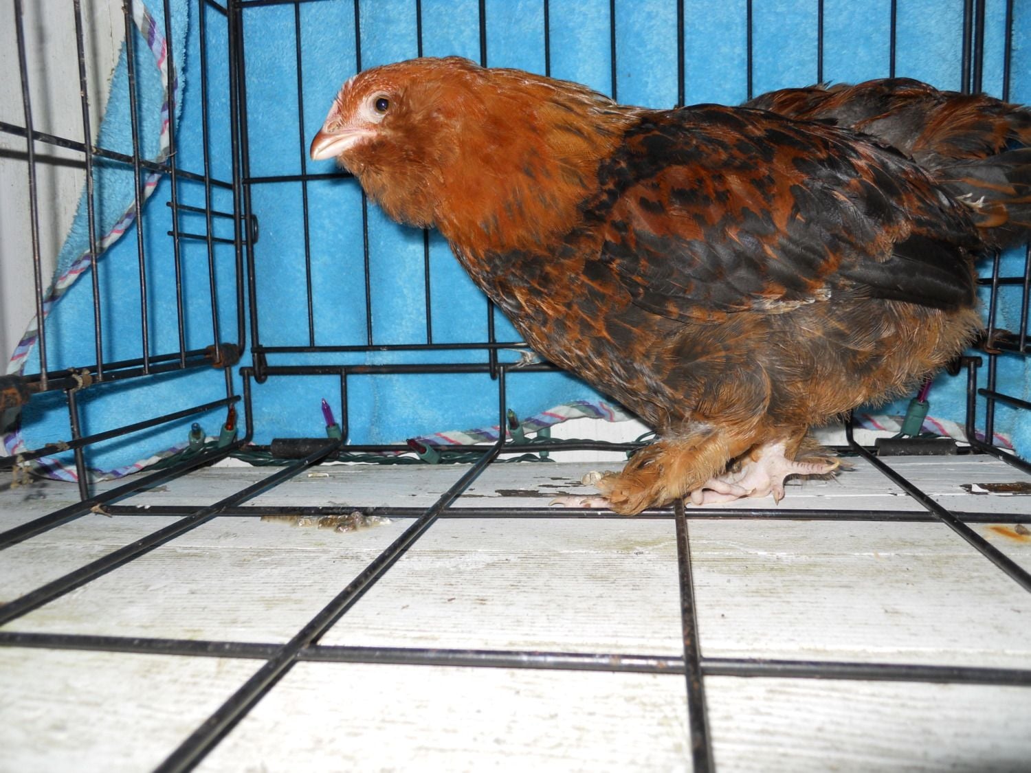 Fire engine red pullet that needs more leg feathering...
