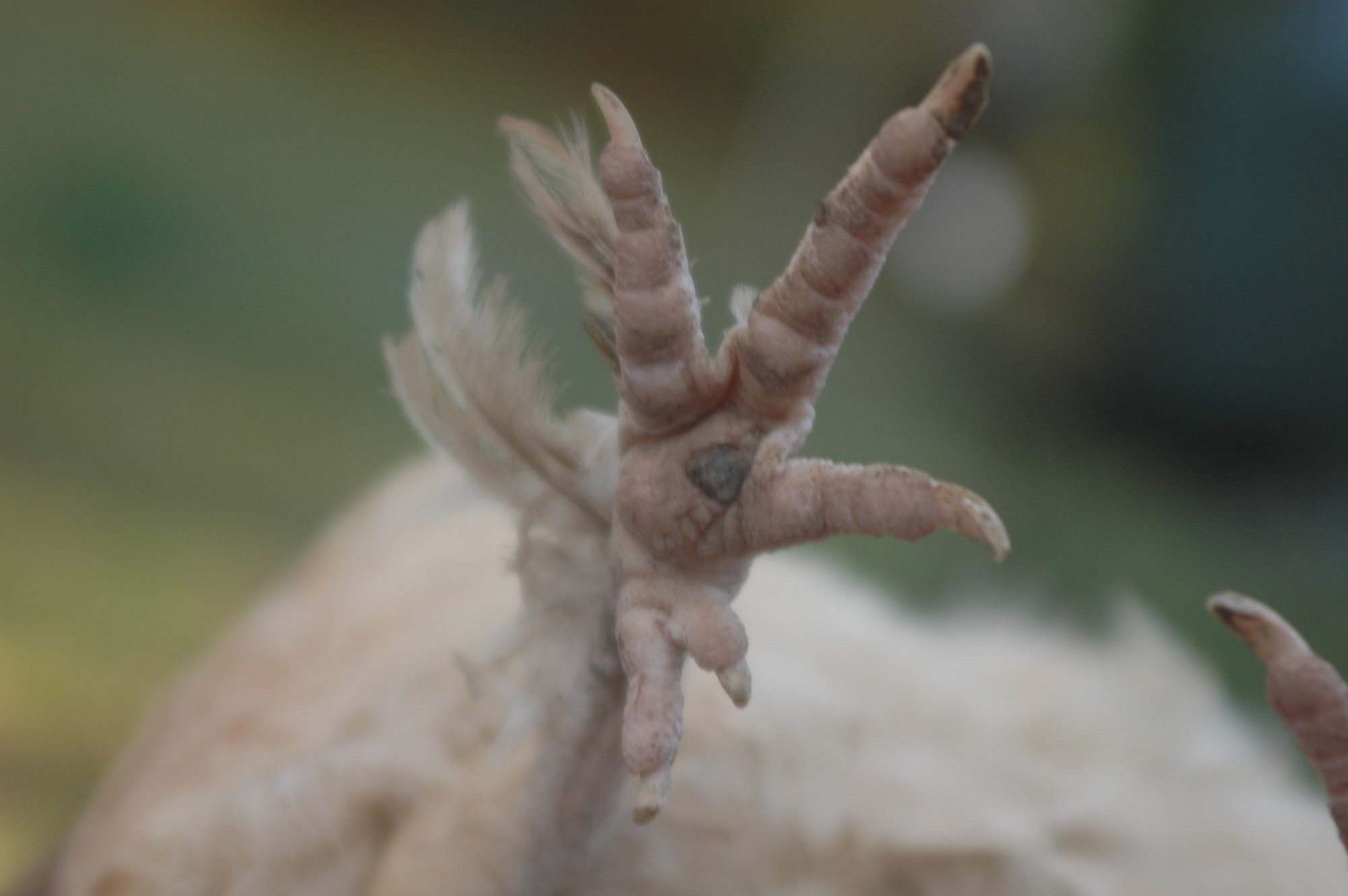 This was the best I could get with just two hands. I didn't get to this girl until today so this is before the scabs came off. She's all bandaged up now and I have to change the other girls bandages so hopefully her feet will look OK.
