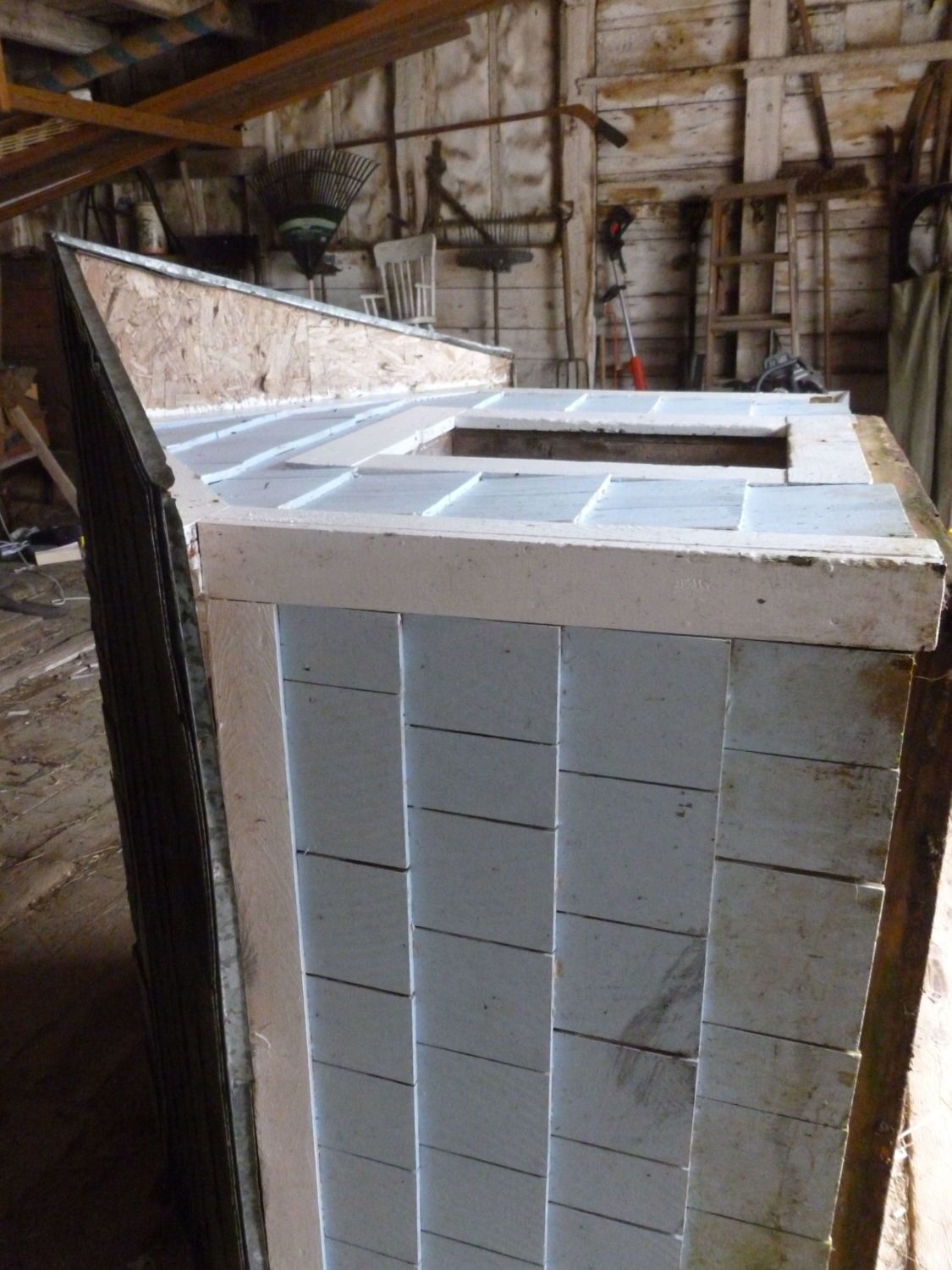 Sorry I can't rotate it. You can see the overhang which is nice and the asphalt roof and galvanized drip edge. The shingles on the base need some work on one side (have a little rot at the bottom) but standing like this it reaches my shoulder. Is there a way to figure out roughly how much space one bird body can reasonably heat? I would like to not put too many in there and it looks too big for six... maybe not. What's the rule of thumb? This might be the new Fav house... or Orloff house.