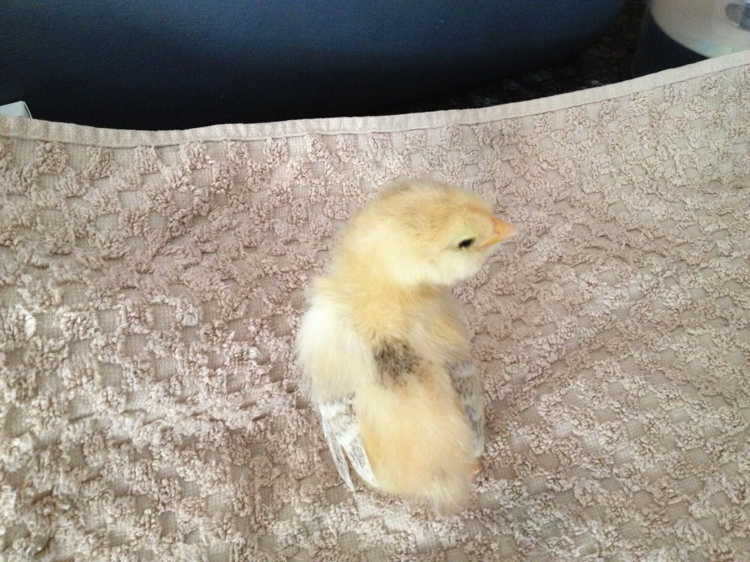 Did they get sexed chicks? Make sure when the body feathers come in that she is really a she. Cockerels feather in slowly, and I see some darker primaries on that chick. That doesn't mean anything yet, since hatcheries do produce some mismarked pullets.
